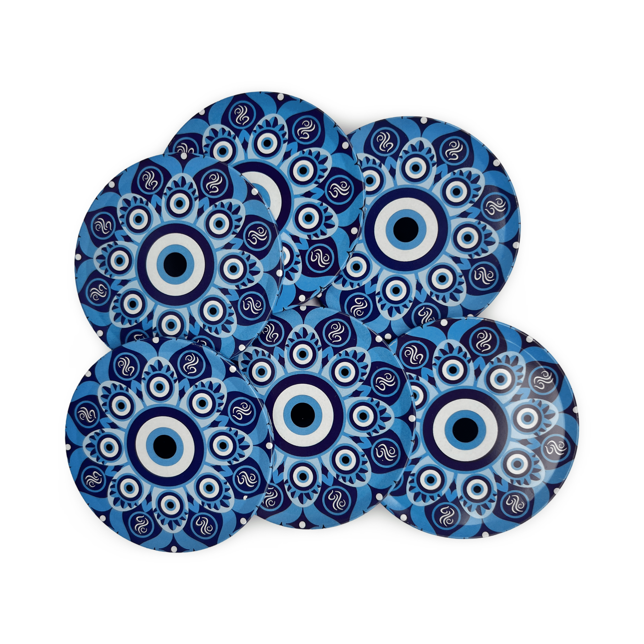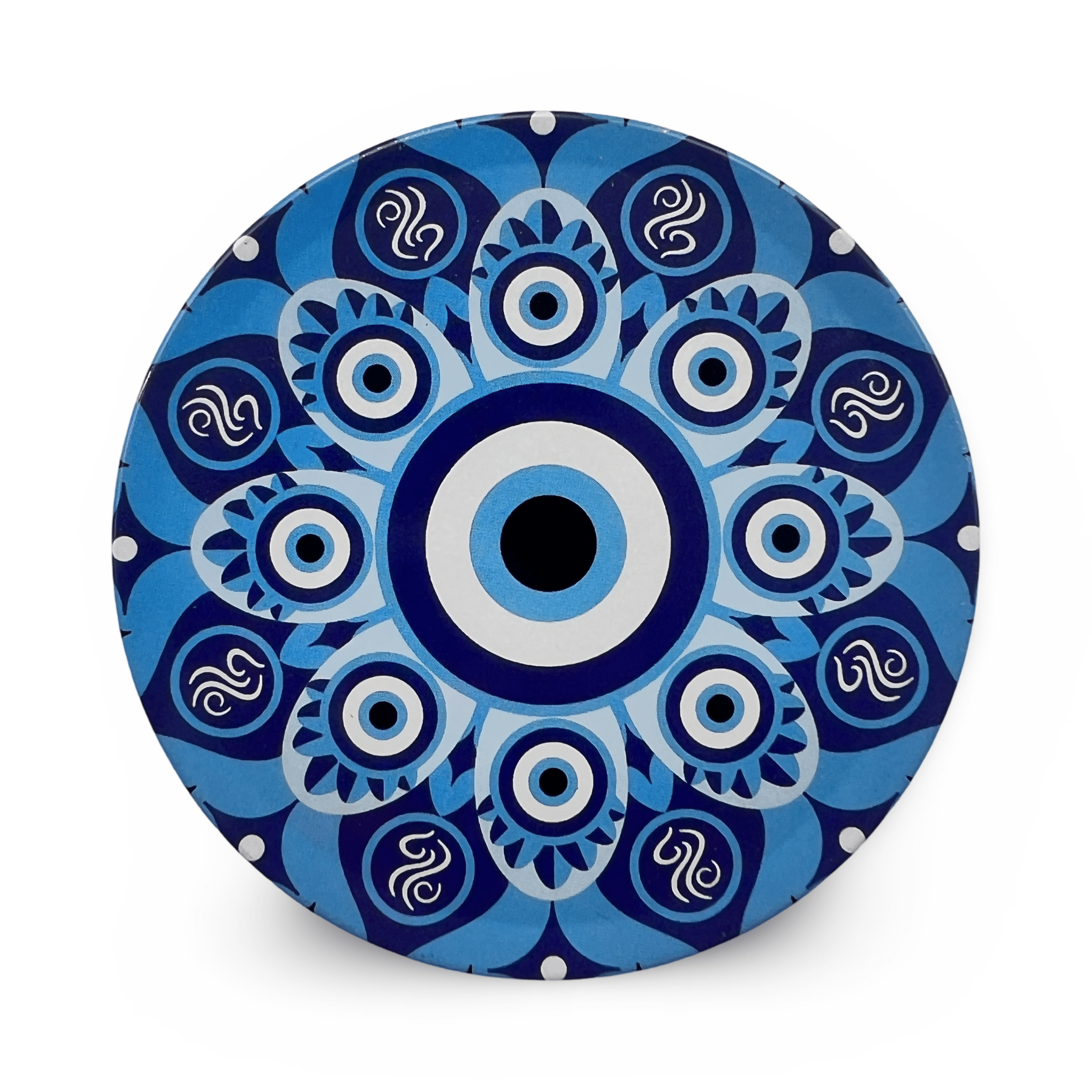 Inspired by Turkey's iconic blues and indigos, woven into the cultural tapestry from Antalya to Istanbul, this Blue Aluminium Nazar Coaster Set of 4 captures the timeless elegance of Turkish tradition. These stunning coasters showcase the classic blue that adorns everything from ancient mosques to coastal villages—the brilliant blue of the Mediterranean sky meeting the Aegean Sea, the shade that has symbolized protection and good fortune for generations.