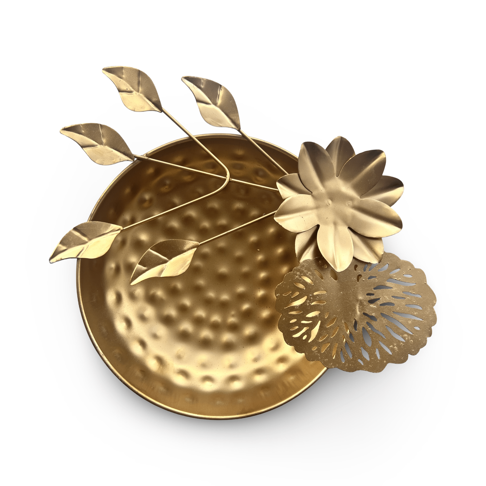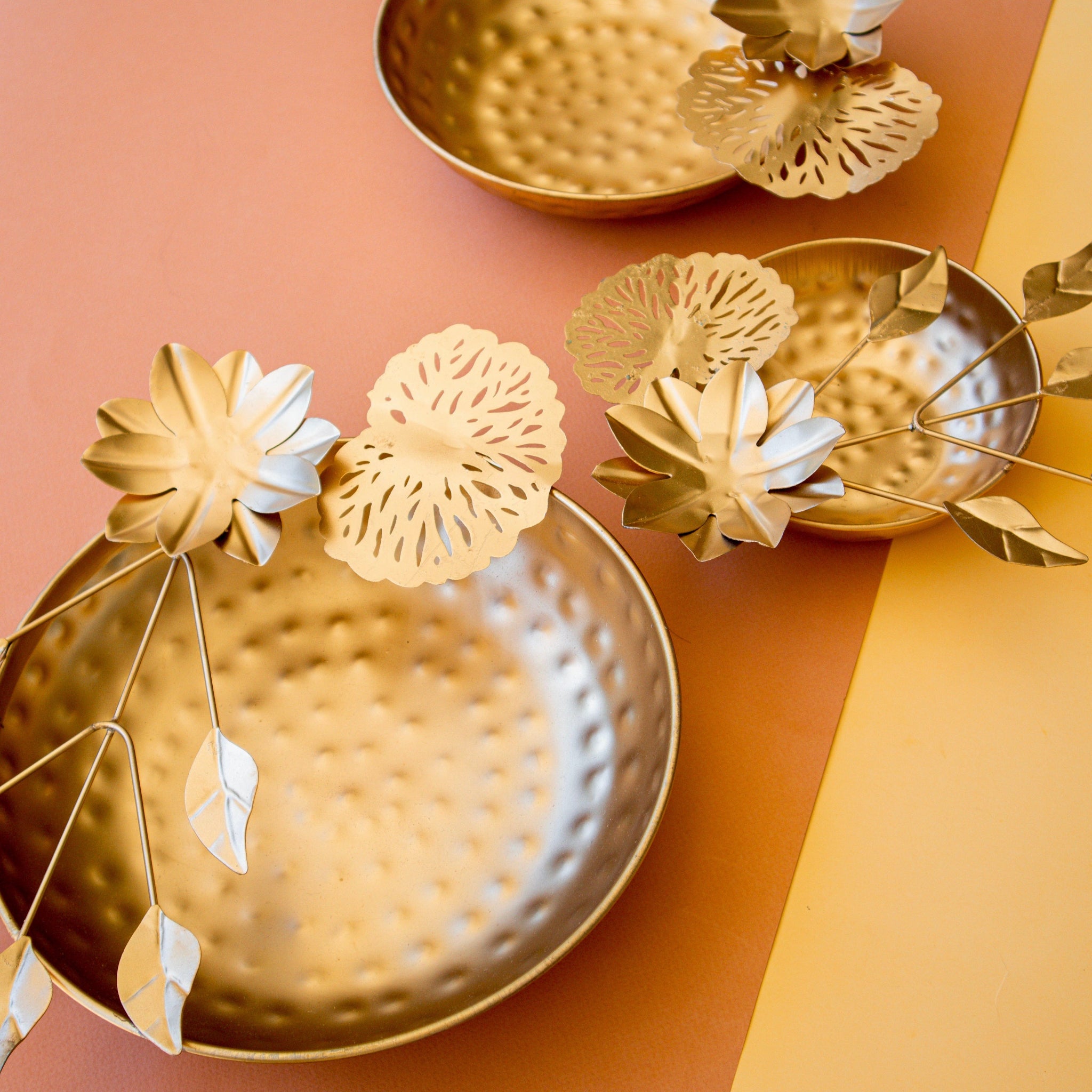 Handcrafted by skilled artisans in India, each Ayana Bowl showcases the timeless beauty of traditional metalwork. Artisans meticulously hand-hammer stainless steel to create a stunning textured surface, then finish each bowl with a luxurious gold coating and delicate flower accents. Because each bowl is individually handcrafted, slight variations in the hammering pattern and finish make every piece uniquely yours—no two bowls are exactly alike. Perfect for serving, display, or as a stunning centerpiece, these bowls bring artisanal elegance to your table.