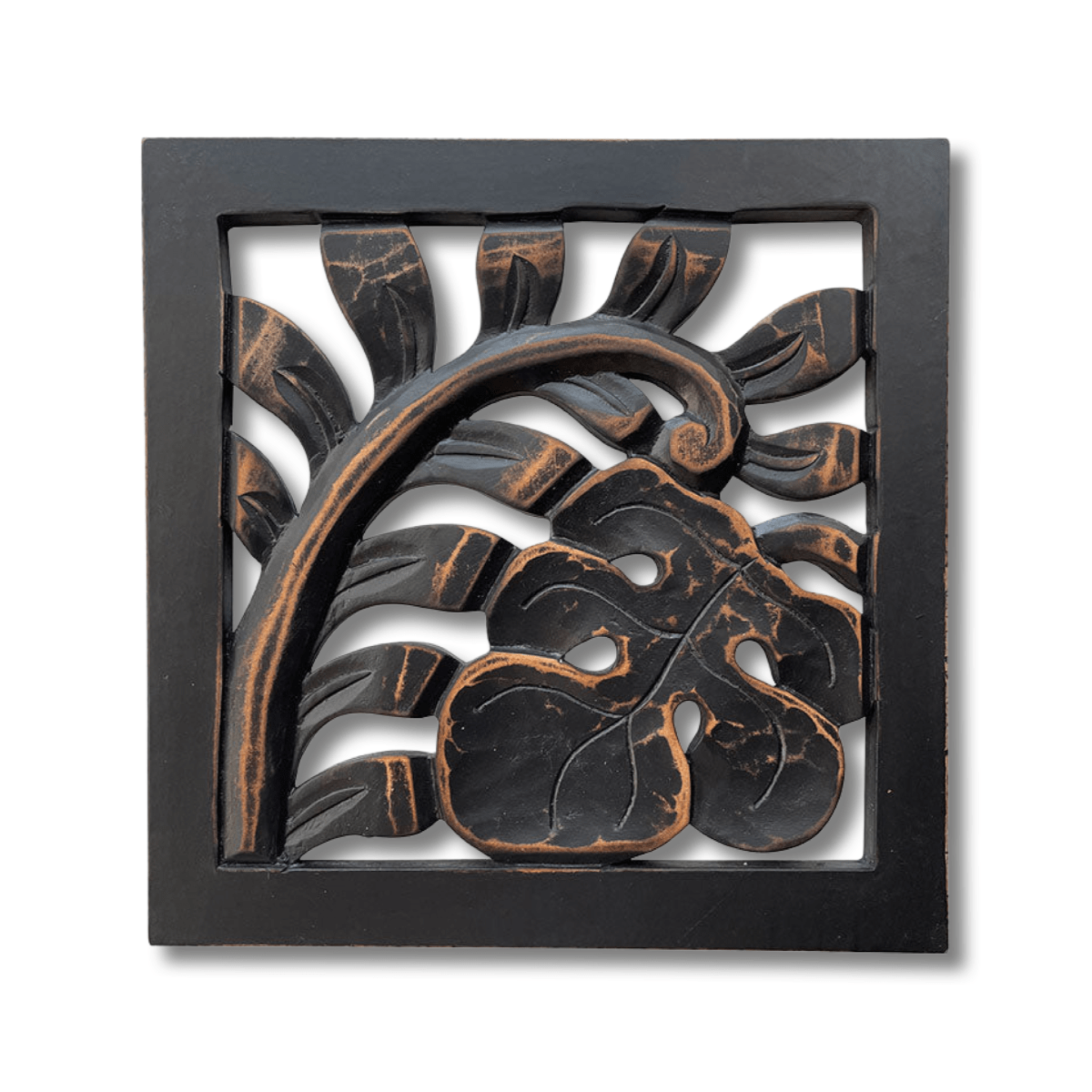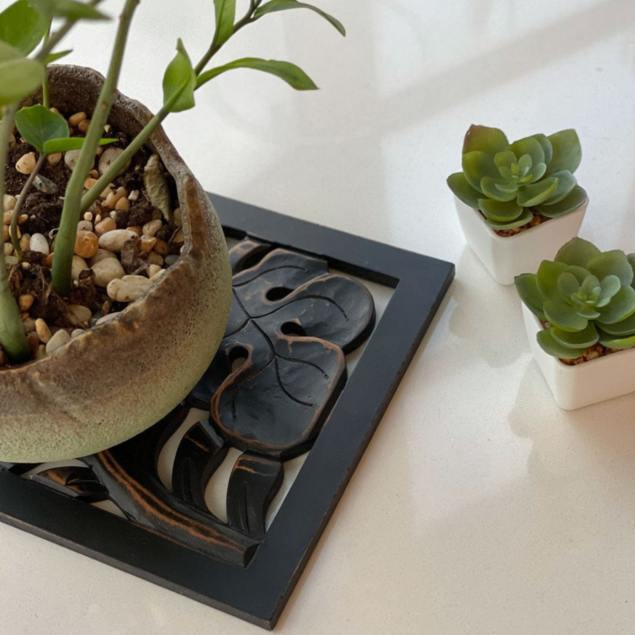 Skilled woodworkers in Indonesia create this Black Floralis Trivet as a beautiful celebration of traditional Balinese carving artistry. Artisans carefully select sustainable materials, then meticulously hand-carve the intricate floral designs that make this piece so distinctive. Drawing from generations of Balinese craftsmanship, each trivet showcases the delicate precision and artistic heritage that the island is renowned for. The rich black finish adds contemporary sophistication while highlighting the carved details, creating a striking contrast that catches the eye. Because each trivet is individually hand-carved, slight variations in the floral patterns and natural grain make every piece uniquely yours.