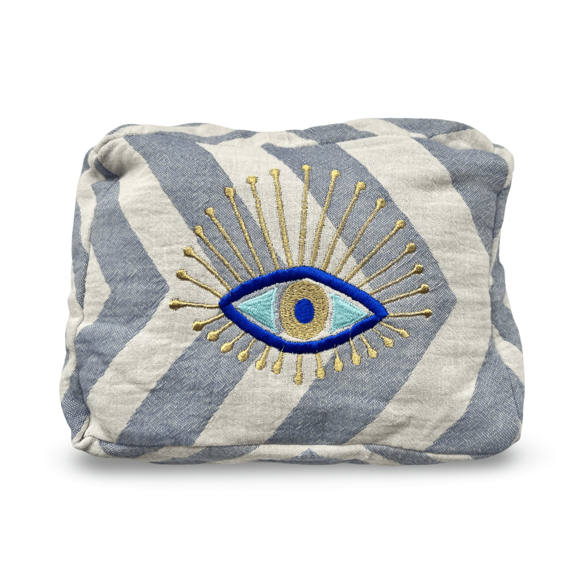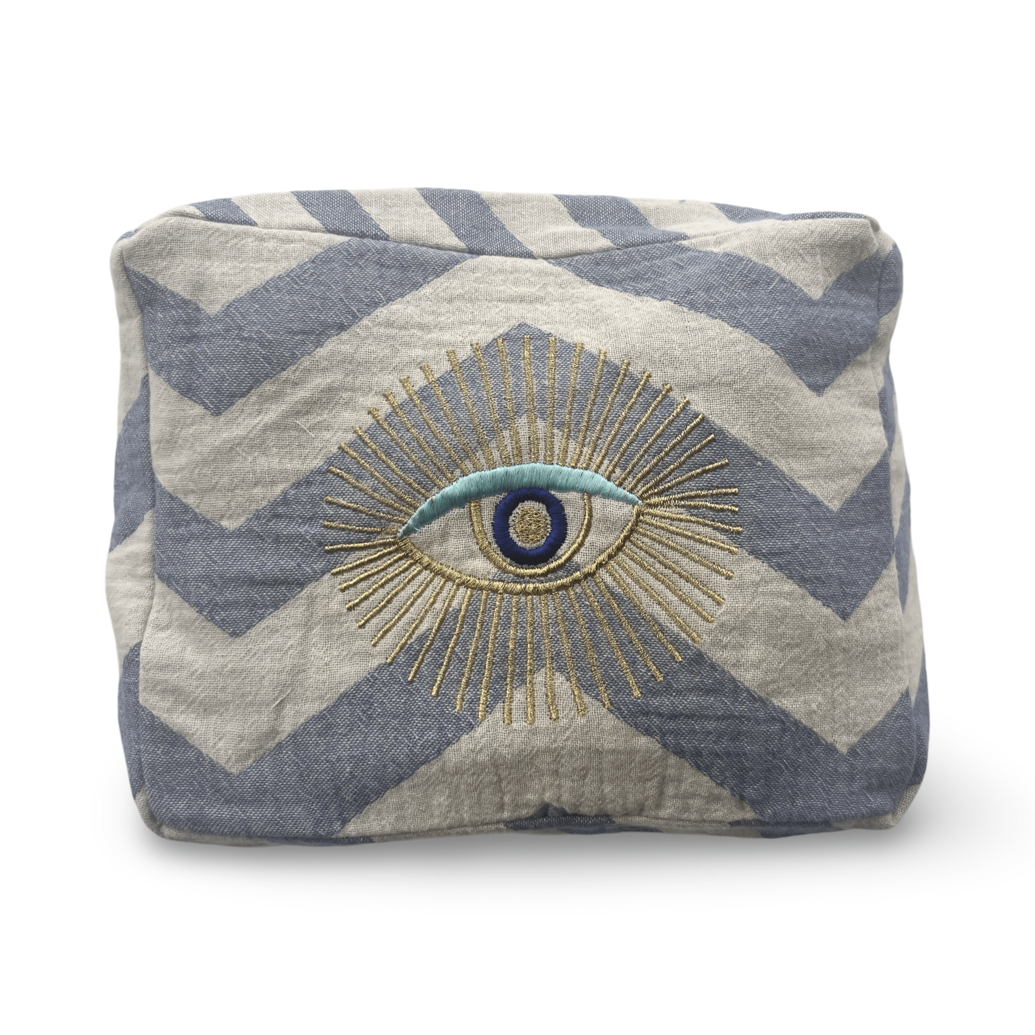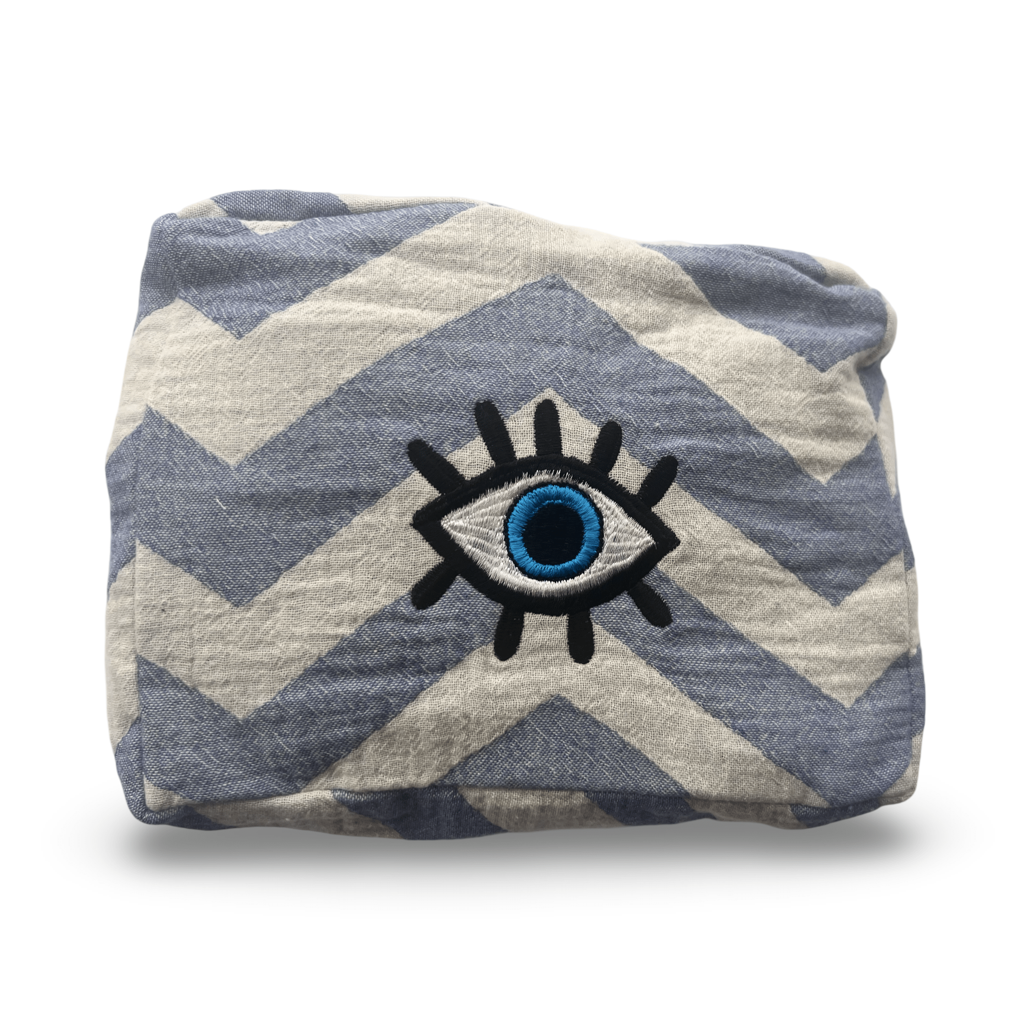 The Blue Ohana Cosmetic Pouch captures the serene depth of ocean waters and clear skies. This classic, calming shade brings tranquility to your beauty routine while remaining versatile enough to complement any handbag. Master artisans in Lebanon execute each protective motif with precision, their needlework honoring generations of textile expertise.