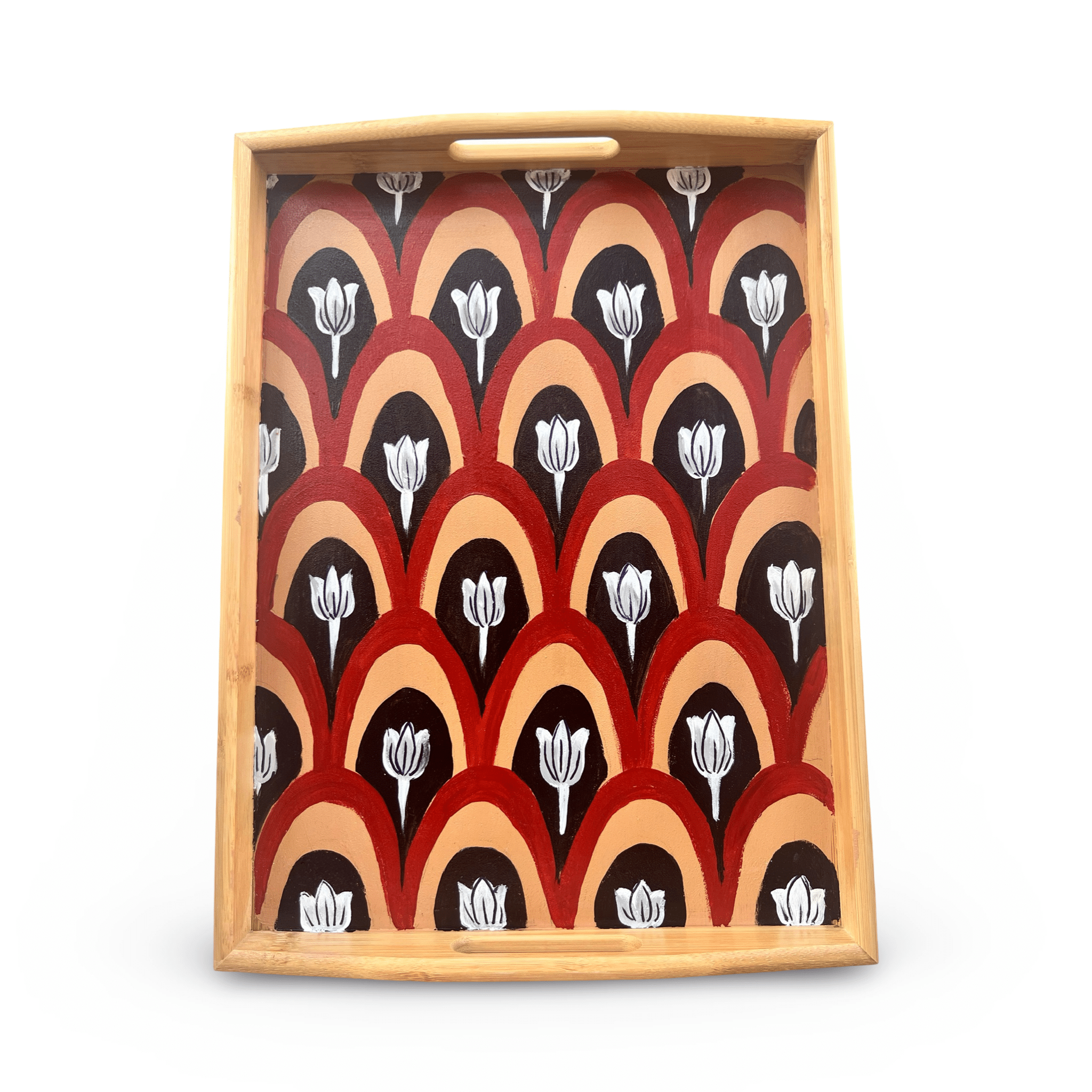Indulge in timeless elegance with the Burgundy Floral Tray, where Jordanian master artisans transform wood into sophisticated functional art. Painted in Jordan's renowned craft workshops, this tray showcases intricate botanical motifs in rich wine tones that evoke the opulence of Persian gardens, Moroccan riads, and European manor houses. The deep palette speaks to refined taste and classic sophistication, while the delicate details add romantic beauty that elevates this piece beyond mere utility.