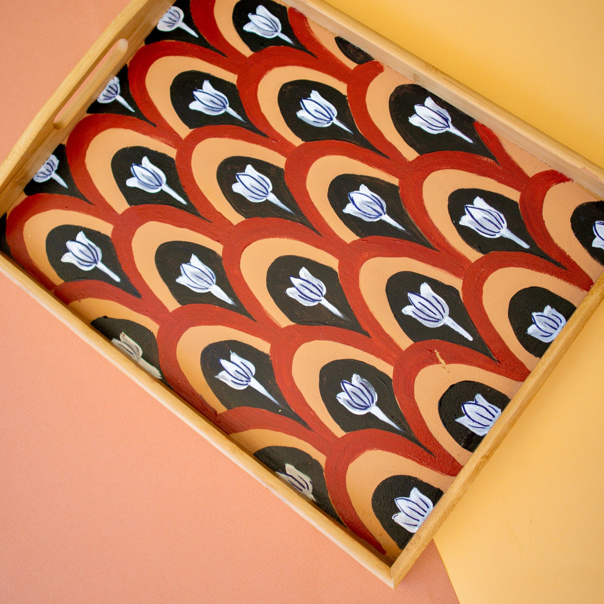 Indulge in timeless elegance with the Burgundy Floral Tray, where Jordanian master artisans transform wood into sophisticated functional art. Painted...