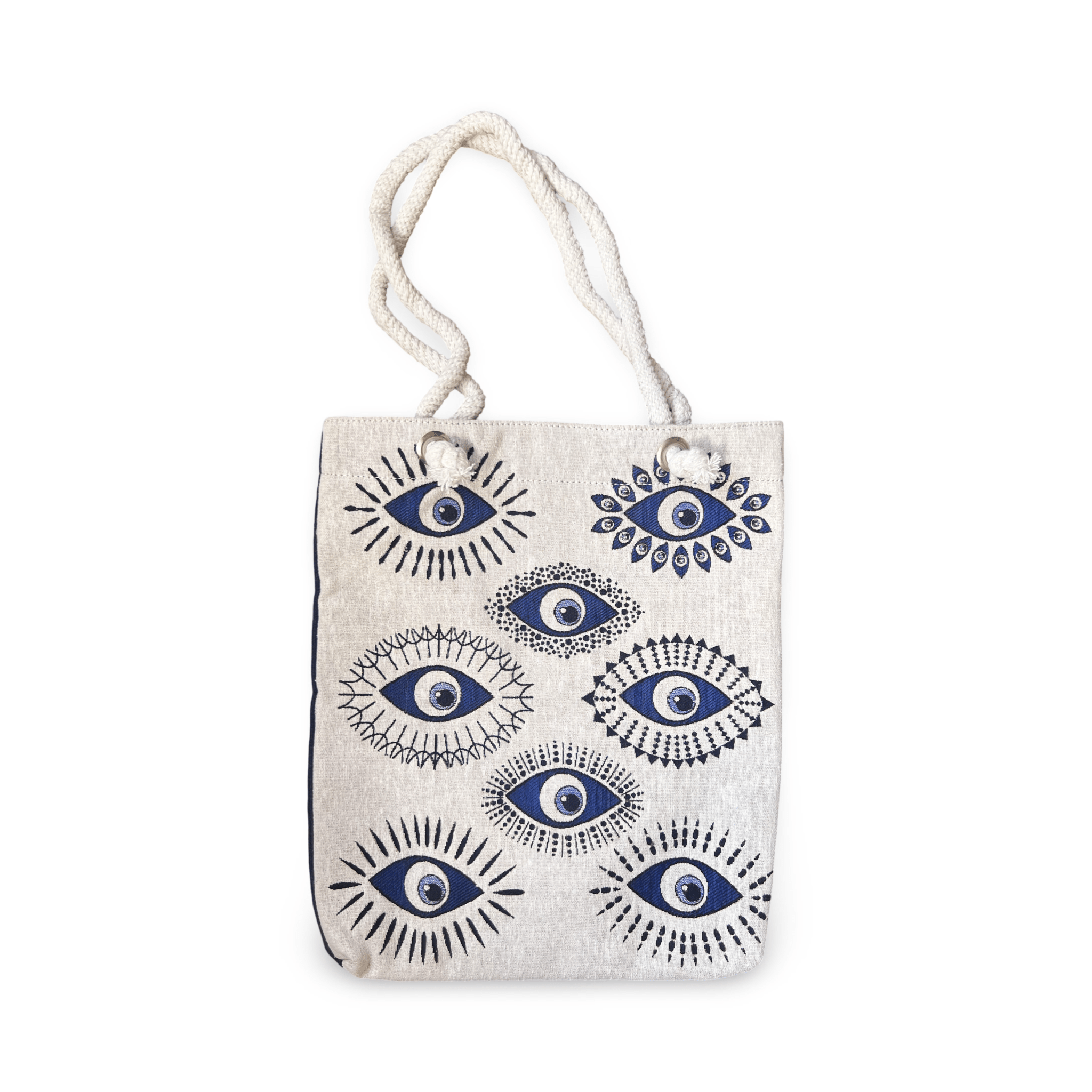 Elevate your resort getaways with the Cairo Evil Eye Canvas Beach Bag, where luxury meets ancient grandeur in a celebration...
