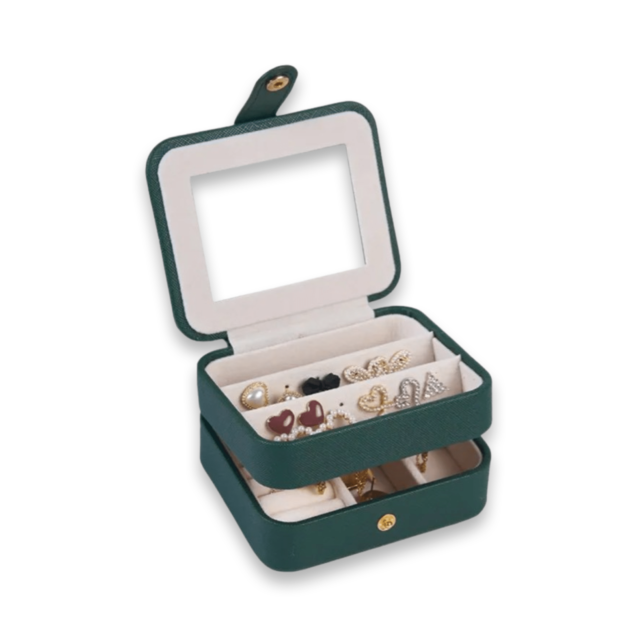 Each tier features dedicated compartments separating rings, studs, delicate chains, and small bracelets with elegant gold hardware adding a luxe touch. Choose from fresh white, soft pink, classic navy blue, or vibrant green to match your personal style or bedroom palette. The compact vertical design makes it ideal for teens starting collections, young professionals in studio apartments, or anyone embracing smart storage solutions.