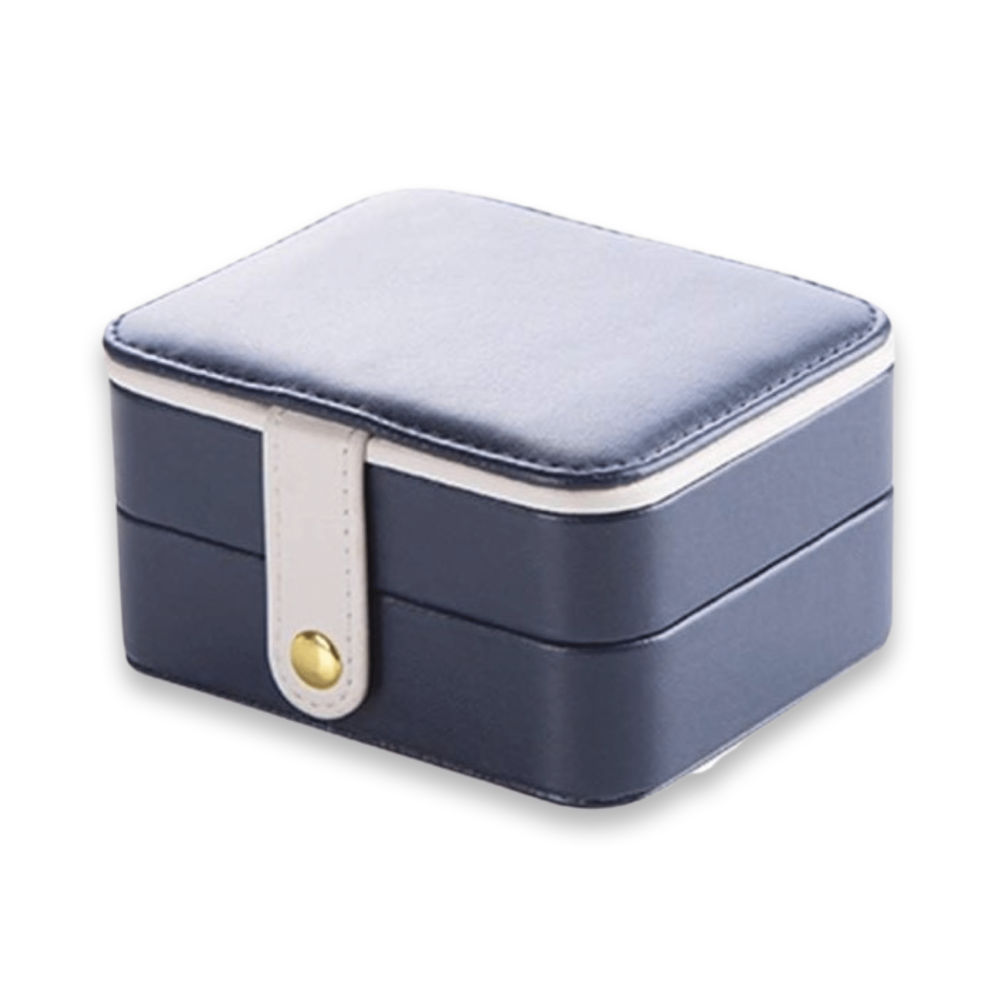 Each tier features dedicated compartments separating rings, studs, delicate chains, and small bracelets with elegant gold hardware adding a luxe touch. Choose from fresh white, soft pink, classic navy blue, or vibrant green to match your personal style or bedroom palette. The compact vertical design makes it ideal for teens starting collections, young professionals in studio apartments, or anyone embracing smart storage solutions.
