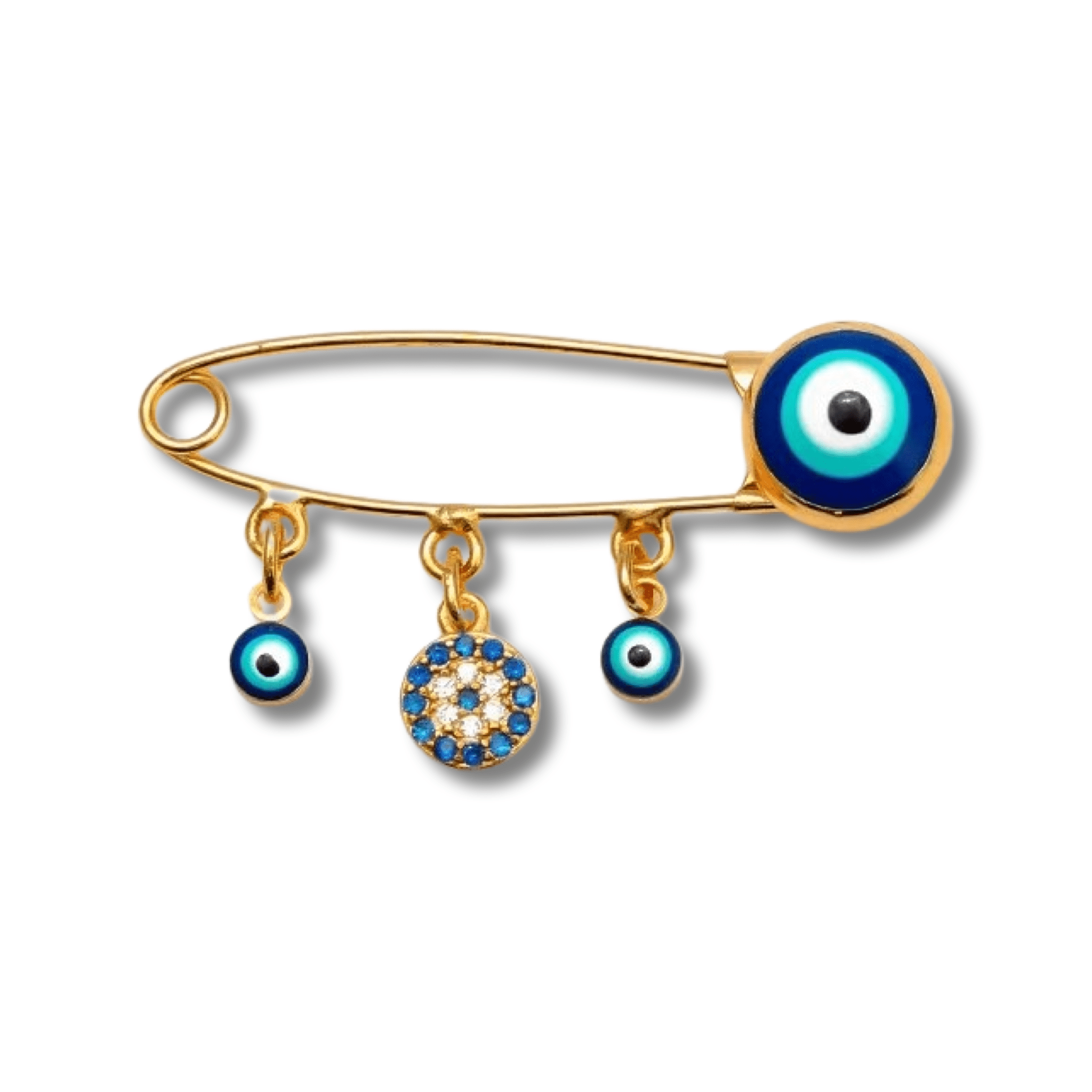 Crafted from premium metal with delicate enamel detailing, this tiny pin features the protective nazar motif that has safeguarded newborns...