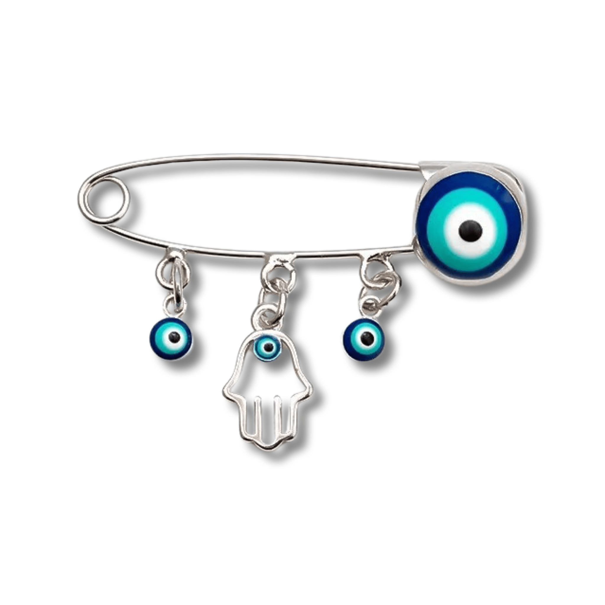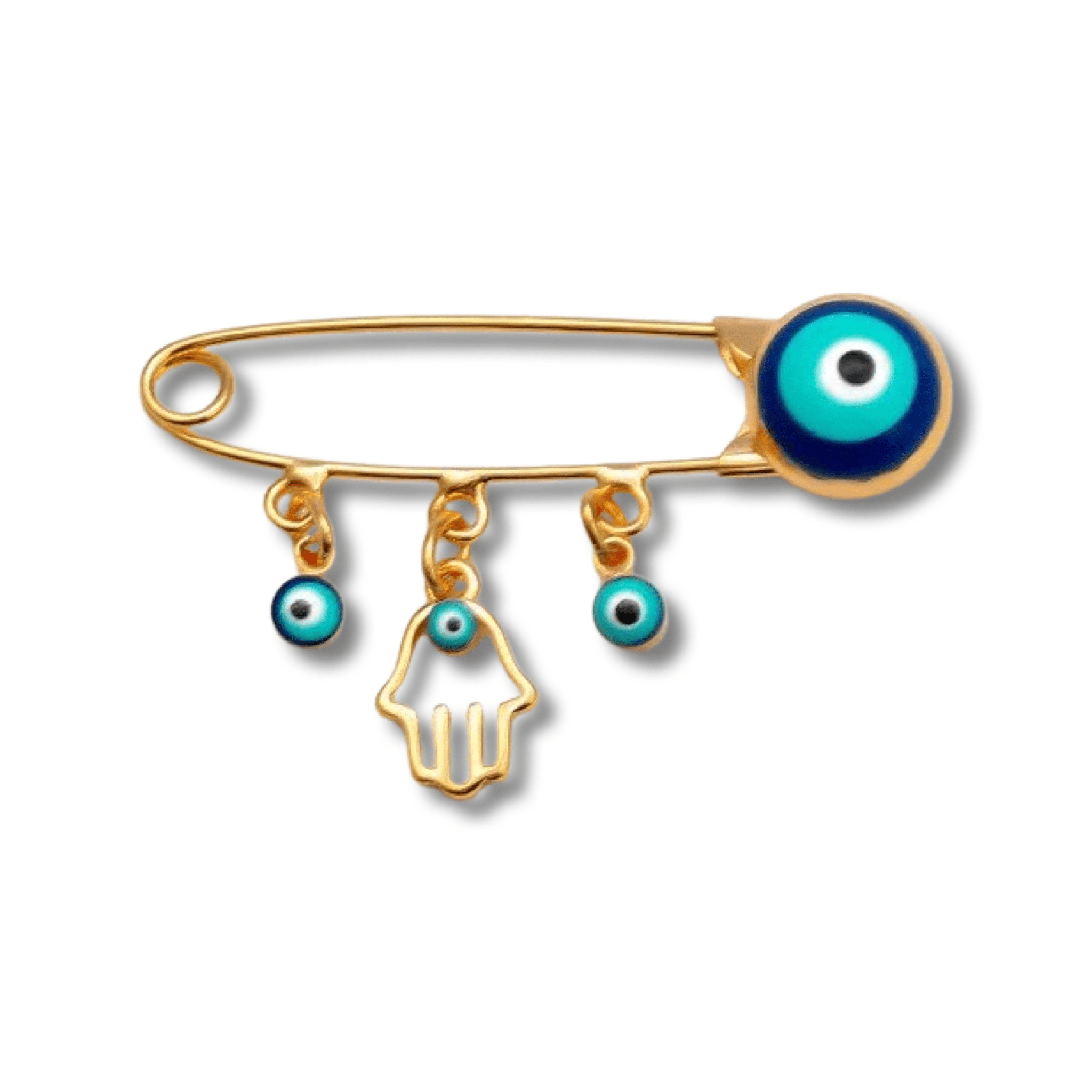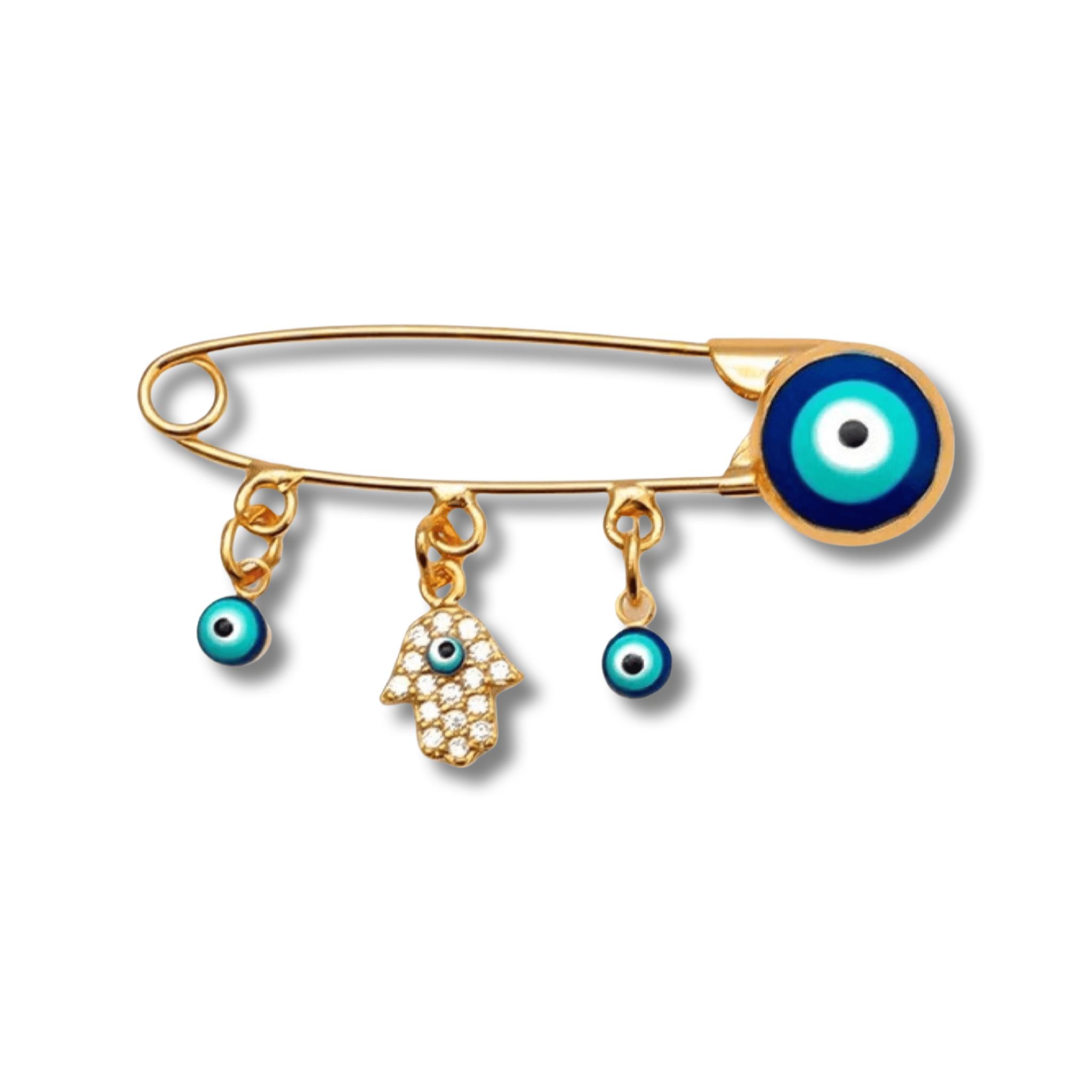 Crafted from premium metal with delicate enamel detailing, this tiny pin features the protective nazar motif that has safeguarded newborns across cultures for thousands of years. Ancient traditions from Greece to Turkey, Egypt to Persia, believed in its power to ward off negativity and bring blessings to infants. The miniature design is sized specifically for baby clothing, blankets, and accessories without adding weight or discomfort.