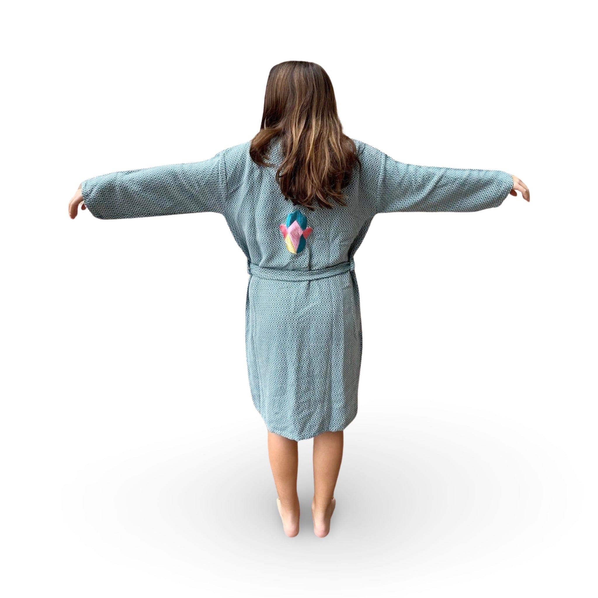 Crafted from soft, high-quality cotton by skilled textile artisans in Lebanon, each Fairuz Robe features beautiful evil eye embroidery that adds both protective symbolism and bohemian elegance to this versatile piece. Artisans carefully create each robe with meticulous attention to detail, hand-embroidering the intricate evil eye motifs that have brought good fortune and protection for centuries. The cozy fabric feels like a warm embrace, offering exceptional comfort that makes this robe perfect for moments of relaxation and everyday style. Whether you're lounging at home, enjoying a spa day, hosting a cozy pajama party, or adding a touch of bohemian chic to your resort wardrobe, this beautiful robe is the perfect companion. Available in a variety of colors, each Fairuz Robe brings authentic Lebanese craftsmanship and artisan character to your comfort wear collection. Perfect as a thoughtful gift for her or a luxurious addition to your own loungewear essentials.