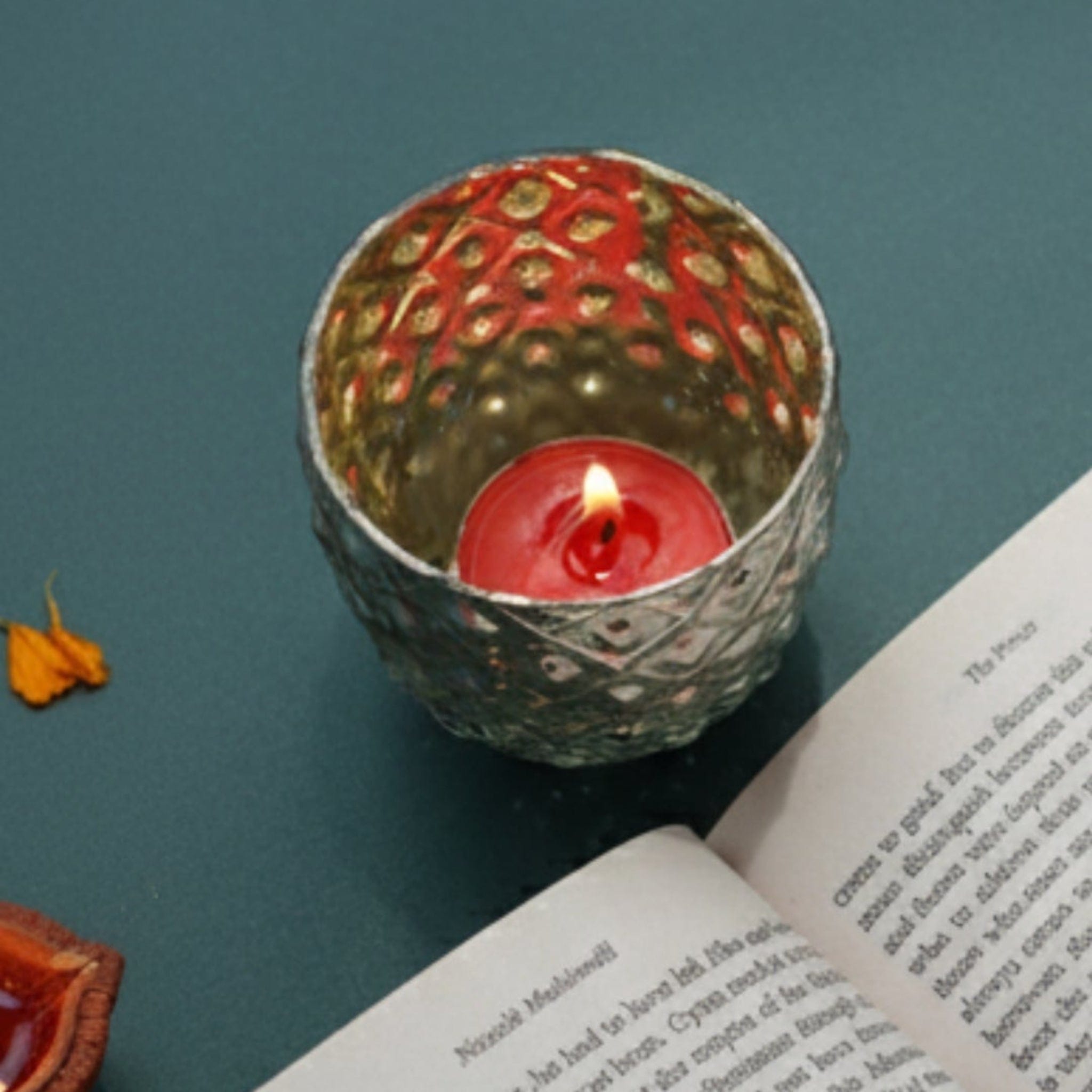 Curate contemporary ambiance with the Gauri Candle Holder, a modern minimalist accent piece crafted in India that brings understated elegance to layered lighting displays. Named after the goddess of purity and austerity, Gauri embodies the 'less is more' philosophy—clean lines, simple silhouette, and a lustrous silver finish that speaks volumes without shouting. This compact tealight holder excels when grouped with multiples, creating sophisticated lighting arrangements that add depth and dimension to modern interiors. The reflective silver glass amplifies candlelight while maintaining a sleek, uncluttered aesthetic that complements Scandinavian minimalism, industrial lofts, or contemporary apartments. Use three or five Gauri holders in varying heights (achieved by placing some on books or small pedestals) to create a dynamic centerpiece for your dining table. Line them along your mantel for a gallery-like display. Cluster them on a tray with smooth stones and succulents for a zen-inspired coffee table arrangement. The small footprint makes Gauri perfect for tight spaces—narrow shelves, bathroom counters, bedside tables—where you want ambient lighting without visual clutter. The Indian craftsmanship ensures quality glass with a flawless finish that catches and reflects light beautifully. An excellent choice for the minimalist who believes in intentional design, the urban dweller working with limited space, or anyone building a cohesive candle holder collection that can be rearranged seasonally. Pair with the Noor Silver Candle Holder for varied heights and textures in your modern lighting display.