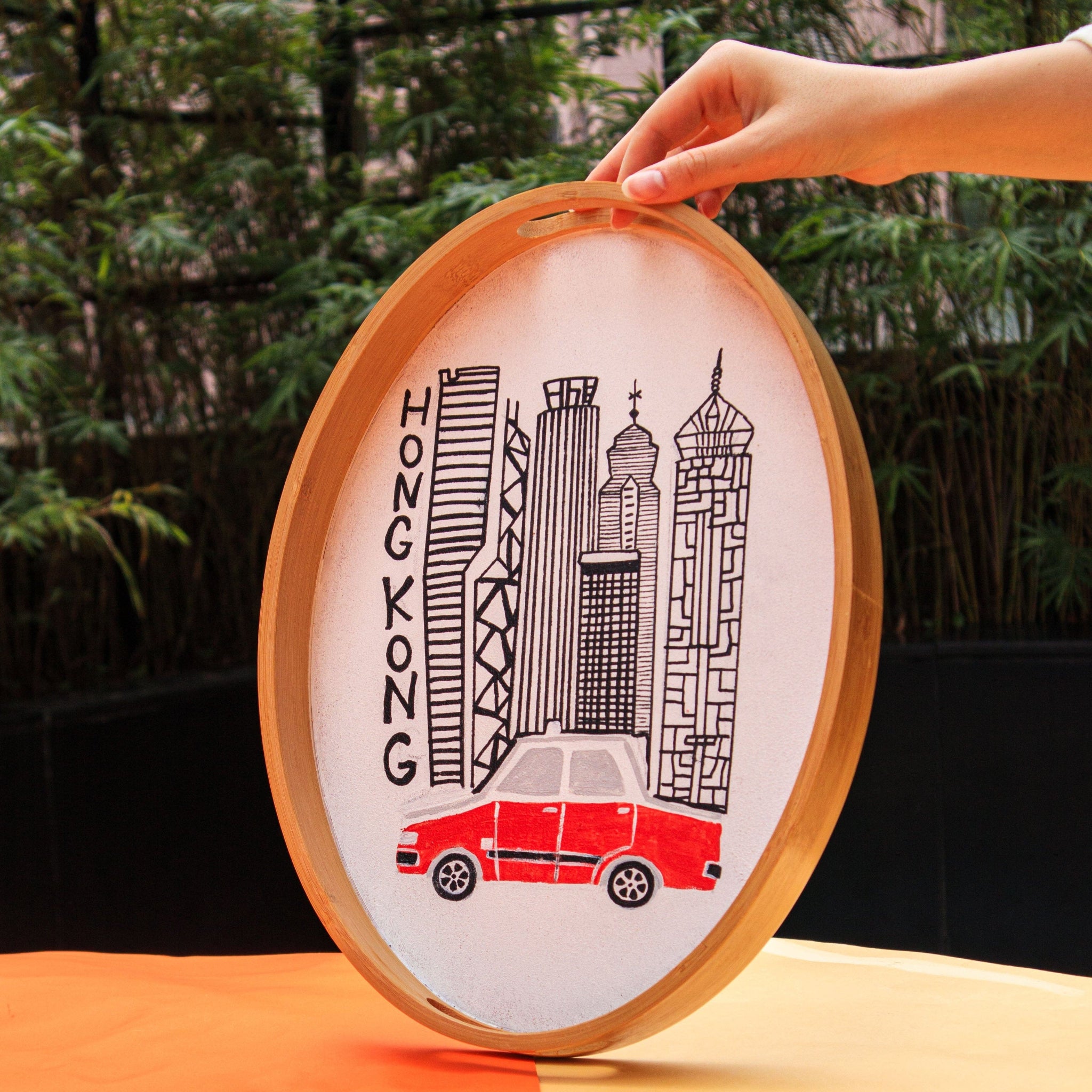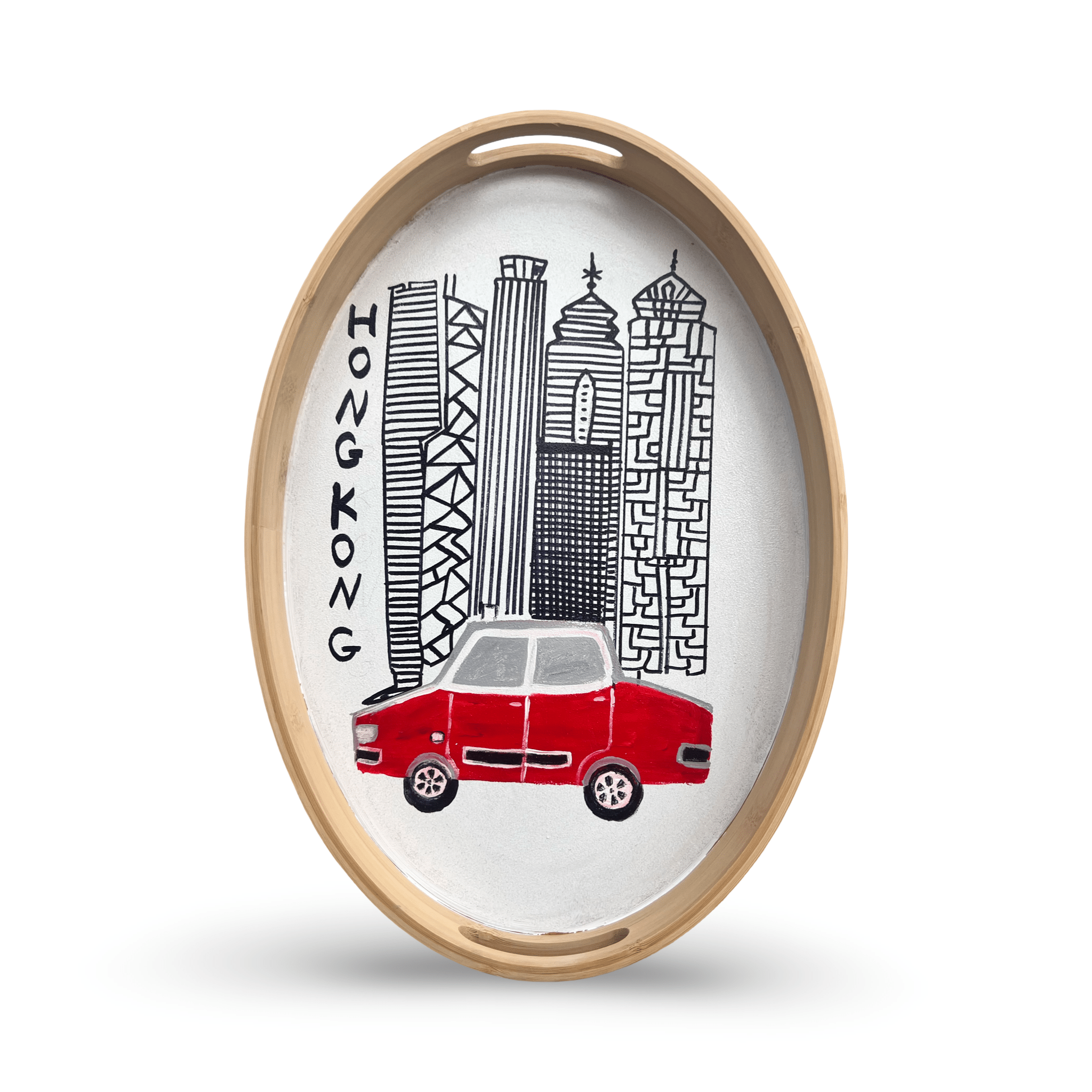 Created by skilled artisans in Jordan, this Hong Kong Taxi Tray brings the city's iconic red taxis to life through meticulous hand-painting. Each Hong Kong serving tray is individually handcrafted by Jordanian painters who specialize in cultural imagery, carefully rendering the beloved red taxi Hong Kong with attention to detail and vibrant color. This stunning piece of HK home decor transforms a simple wooden tray into functional art that celebrates Hong Kong's urban character. Perfect as a Hong Kong souvenir or Victoria Harbour gift for entertaining guests, this authentic Hong Kong collectible makes every gathering special. As with all hand-painted pieces, each tray is unique with natural variations in the taxi's details and color intensity—signatures of authentic artisan work. Whether you're looking for Hong Kong memorabilia or a distinctive Hong Kong gift, this tray brings the city's energy to your home. For an alternative Hong Kong design, explore our Hong Kong Star Ferry Tray.