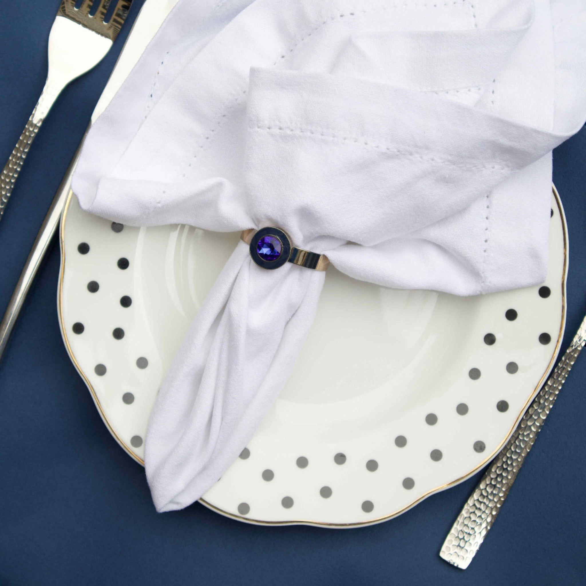 Indigo Enamel Gem Napkin Ring (set of 4)