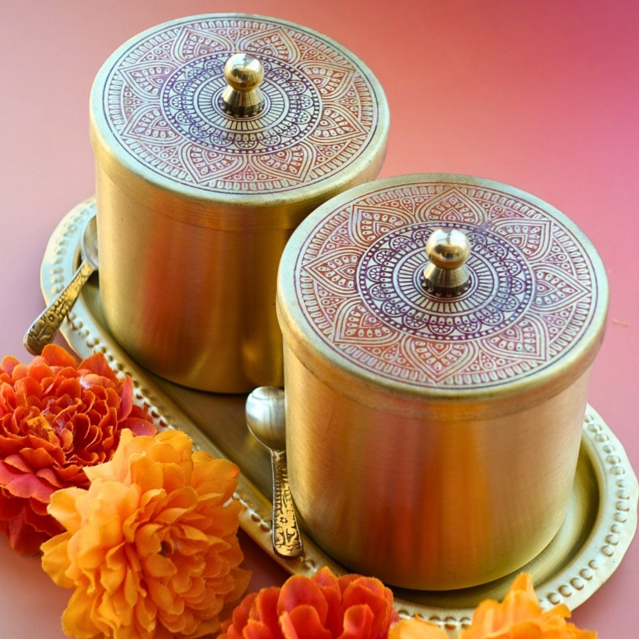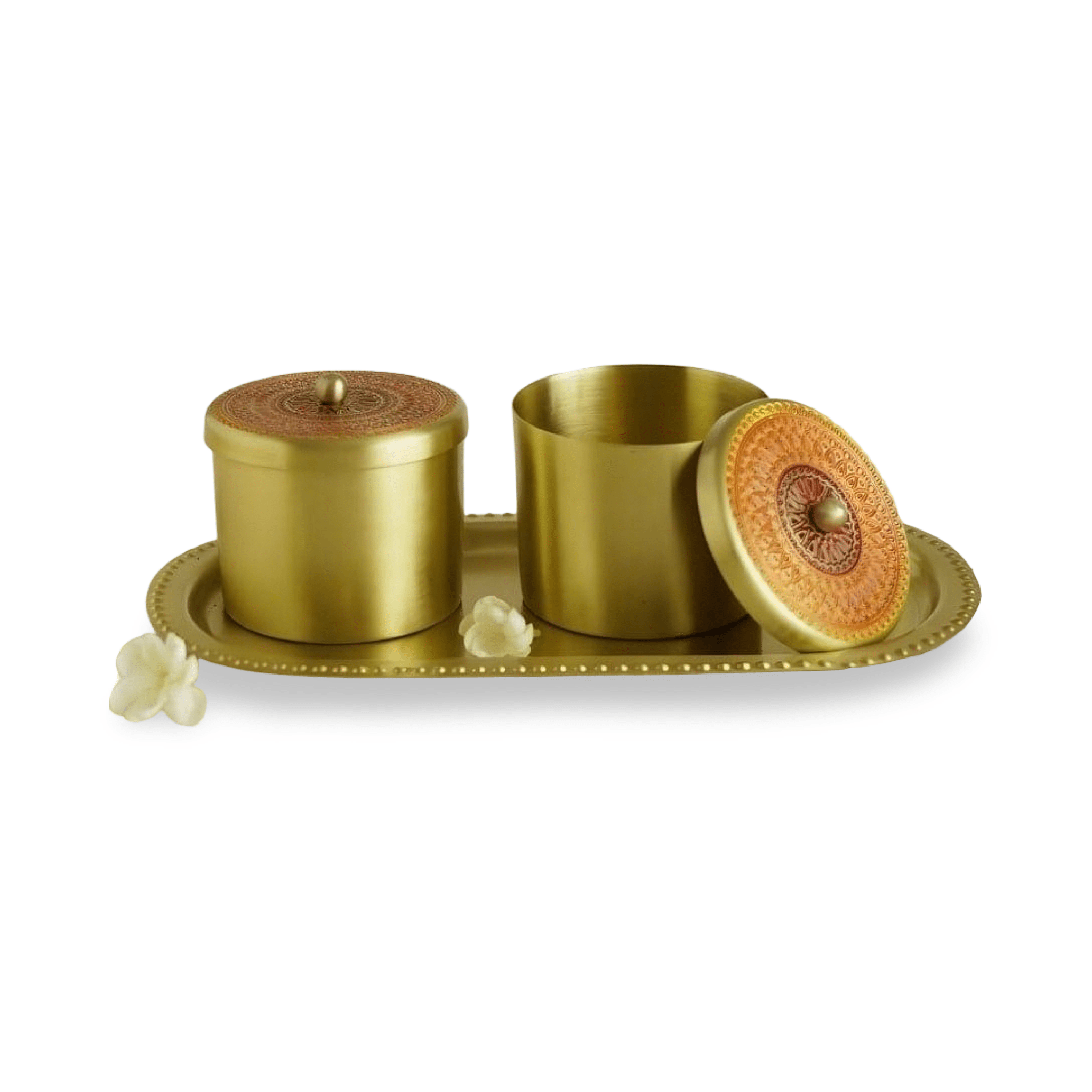 Kabir Brass Jars - Set of 2 with Tray