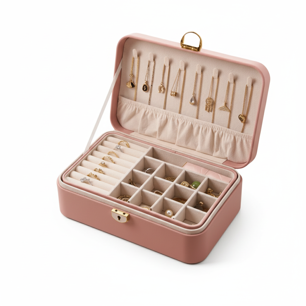 Thoughtfully designed compartments keep rings, necklaces, bracelets, and earrings beautifully organized and instantly accessible for busy Hong Kong mornings. The elegant brown, refined beige, and soft pink exteriors in premium vegan leather complement sophisticated bedroom aesthetics while plush interior lining protects your investment pieces from scratches and damage.