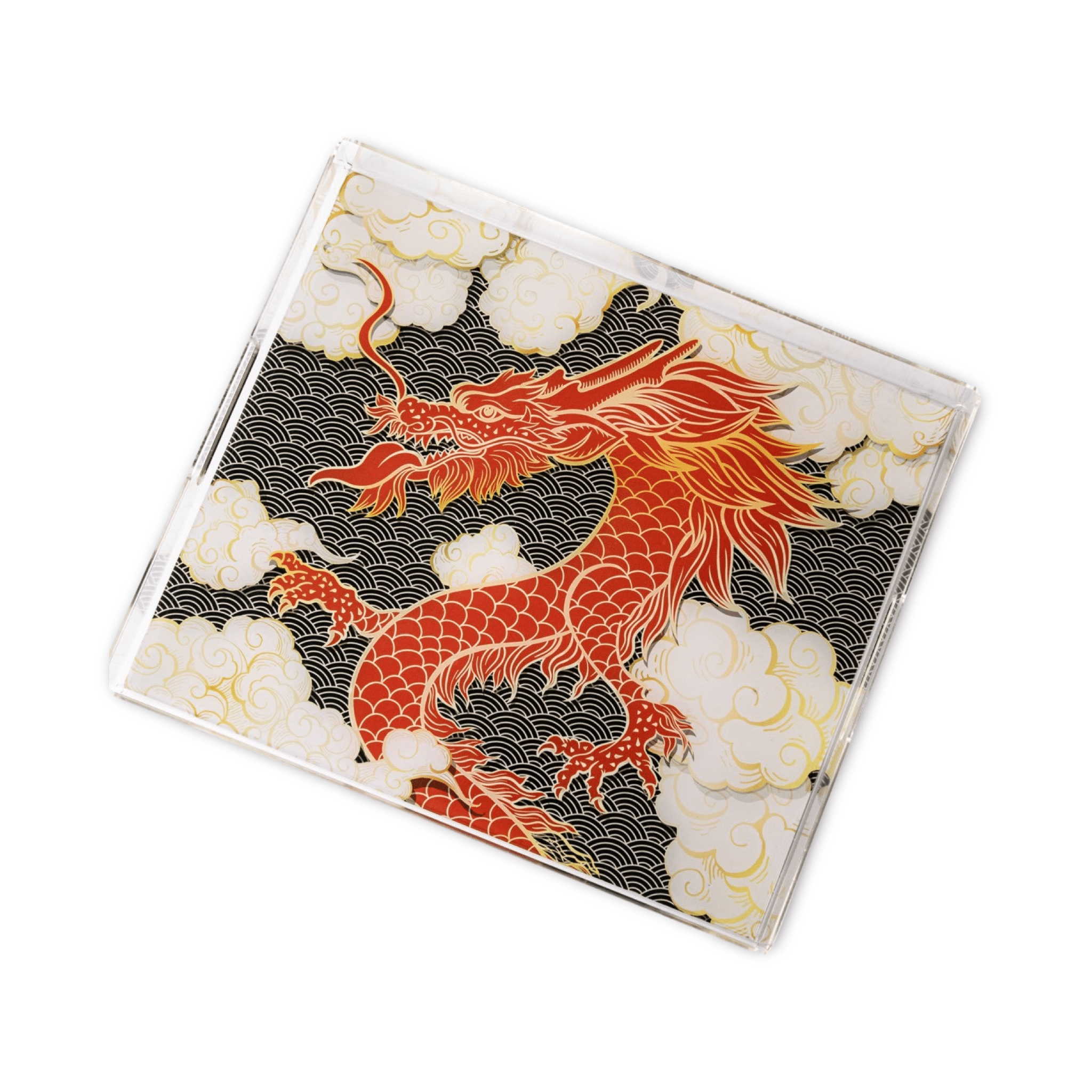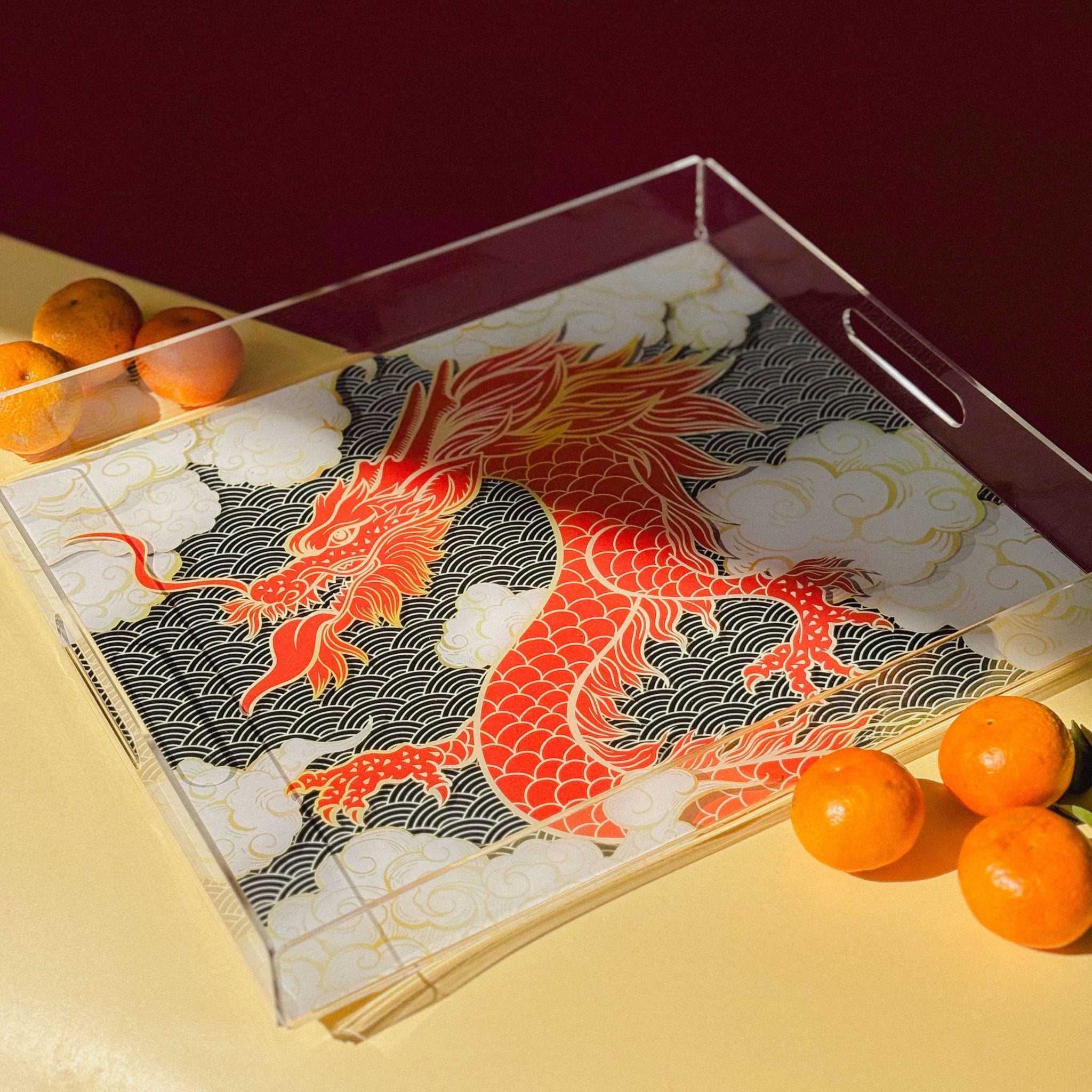 Skilled artisans in Jordan create the Lina Tray, celebrating the majestic red symbol of strength, prosperity, and good fortune in Chinese culture. Each tray is individually crafted, with talented local artists carefully painting the intricate design onto the durable acrylic surface. The vibrant red and gold palette reflects traditional Lunar New Year aesthetics, brought to life through meticulous brushwork and attention to detail.
