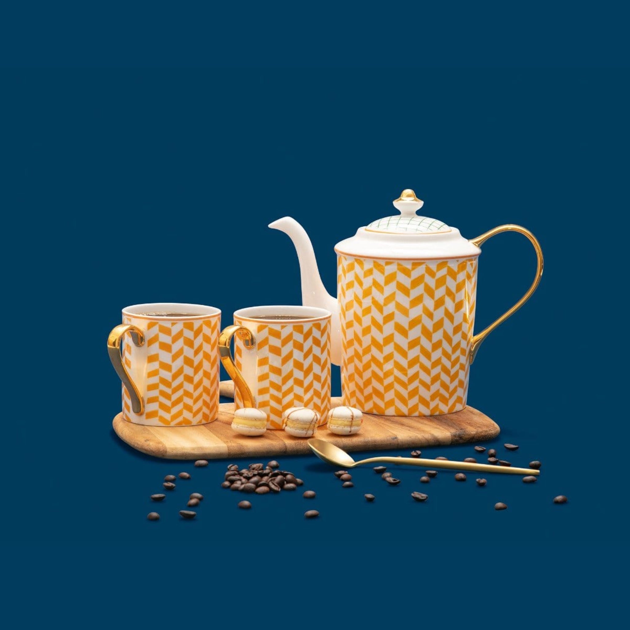 Crafted from premium porcelain, the Margarita Mug brightens your mornings and elevates daily rituals with its charming yellow and white design that brings sunshine to every sip. Skilled ceramic artisans carefully shape and glaze each mug, combining durability with refined beauty. Whether you're savoring morning coffee, enjoying afternoon tea, indulging in hot cocoa on cozy winter evenings, warming up with New Year's Day coffee, or treating yourself to a soothing herbal blend before bed, this beautifully crafted mug adds a cheerful touch to your beverage routine. The generous 300 ml capacity provides perfect size for your favorite drinks while the comfortable handle ensures a pleasant grip. The construction keeps drinks warm during cold winter mornings while the smooth, glossy finish feels refined to the touch. The timeless yellow and white palette complements any kitchen décor, from modern minimalist to classic traditional, adding a pop of color to your morning routine. Perfect for treating yourself to daily luxury or gifting to someone special. This versatile mug makes an excellent birthday gift, Mother's Day present, housewarming treasure, or thoughtful addition to your brunch table. Pair with the Margarita Serving Plate for a coordinated table setting. Dishwasher and microwave safe for lasting convenience.