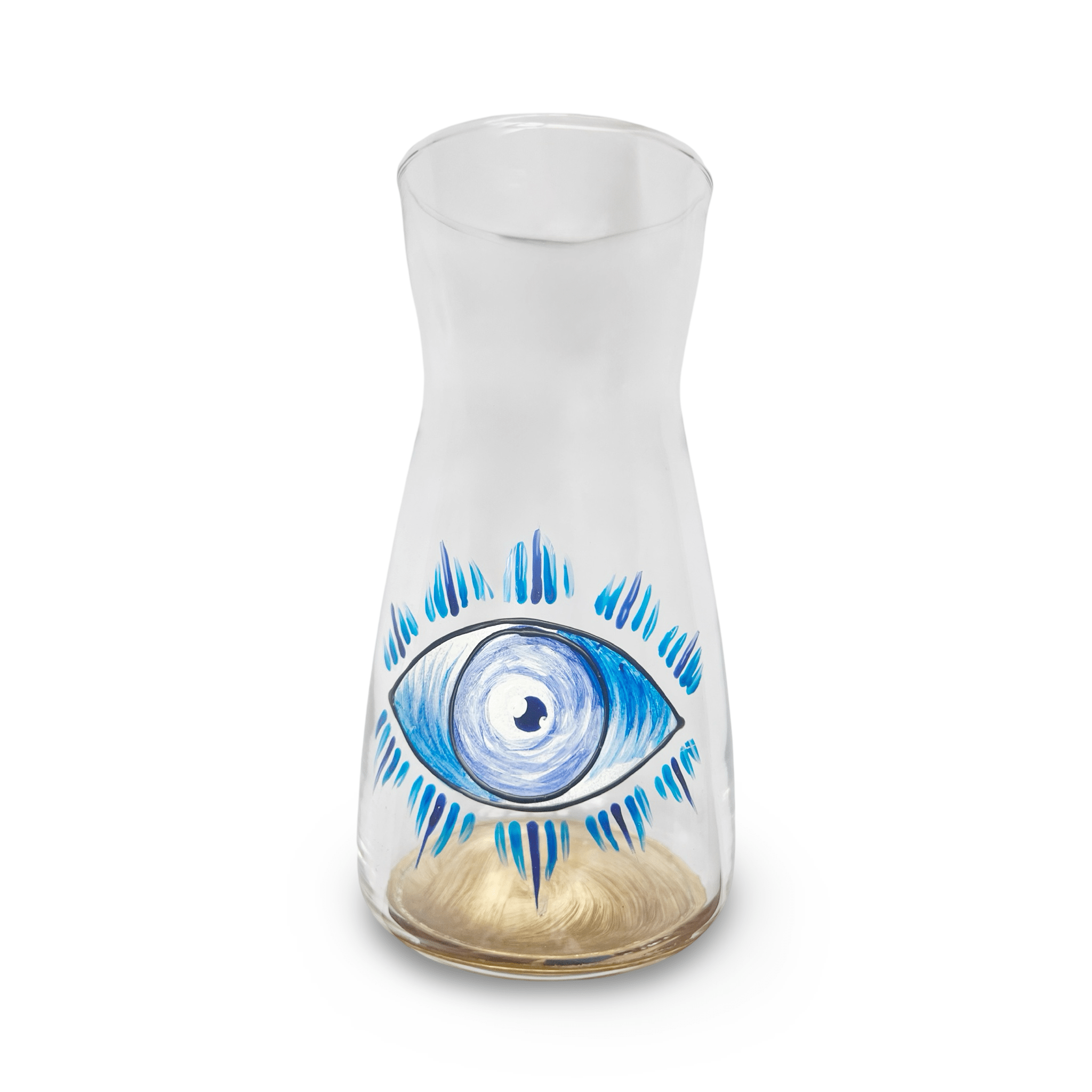 Elevate your entertaining with the Maryam Water Carafe, where Jordanian artisan excellence meets refined table elegance. Named after the Arabic form of Mary—symbolizing grace and sophistication—this exquisite carafe transforms beverage service into an art form worthy of your most discerning guests. Master glass painters in Jordan's renowned workshops apply intricate evil eye motifs with precision and artistry honed over generations, creating a piece that bridges ancient protective symbolism with contemporary luxury aesthetics. The delicate hand-painted designs showcase the meticulous craftsmanship that distinguishes true artisan glassware from mass production, with subtle variations that authenticate each carafe's handmade provenance. Crystal-clear glass provides an elegant canvas for the cobalt blue evil eye patterns while beautifully showcasing your beverages—whether chilled Sancerre at intimate dinner parties, infused water at sophisticated luncheons, or fresh-pressed juices at elegant brunches. The graceful silhouette and comfortable handle ensure poised, confident pouring that impresses without pretension. This carafe speaks to hosts who appreciate understated luxury, collectors of fine glassware, those who set tables with intention, and gift-givers seeking meaningful pieces for weddings, anniversaries, or milestone celebrations. Pair with the Maryam Water Glasses to create a refined table setting that honors both tradition and taste.