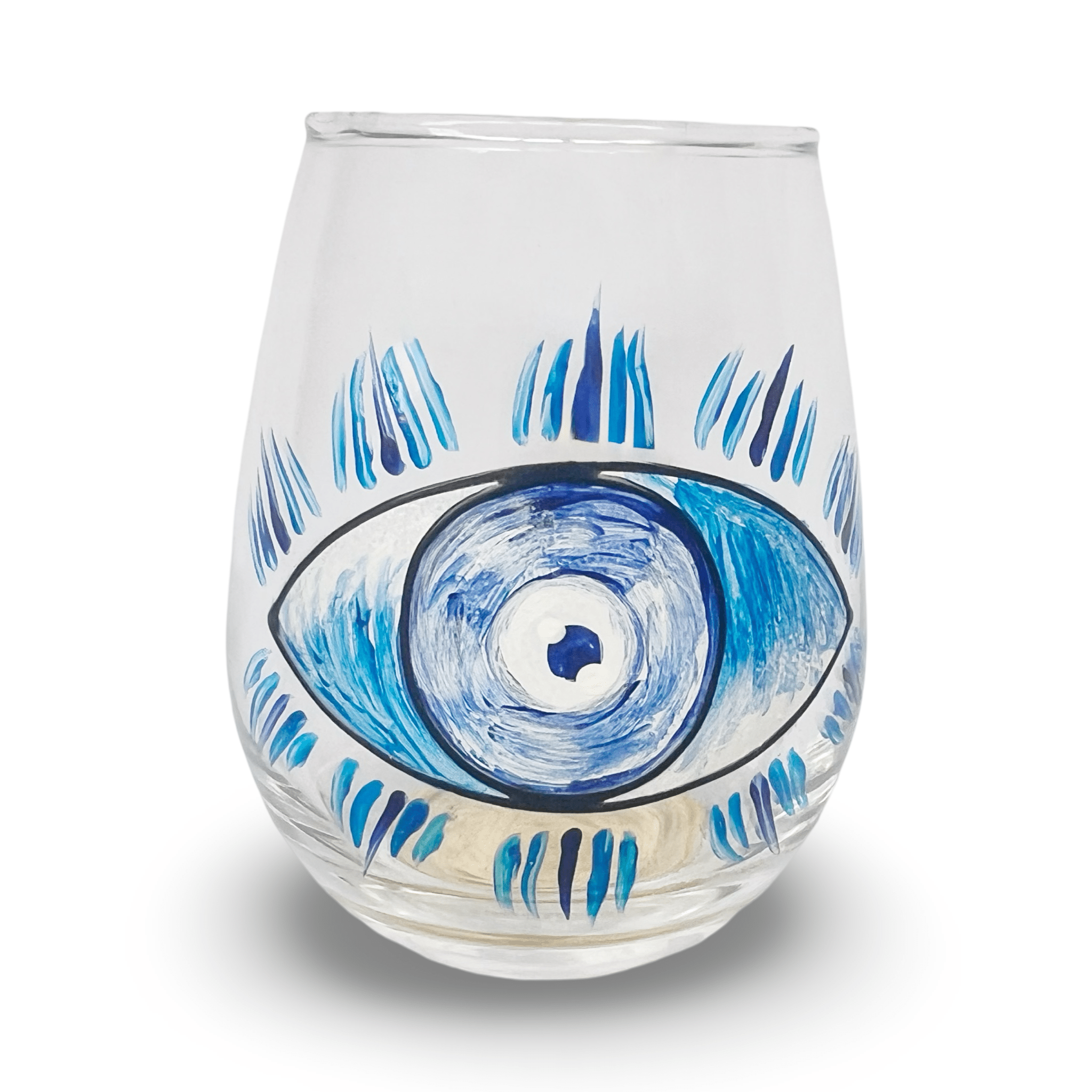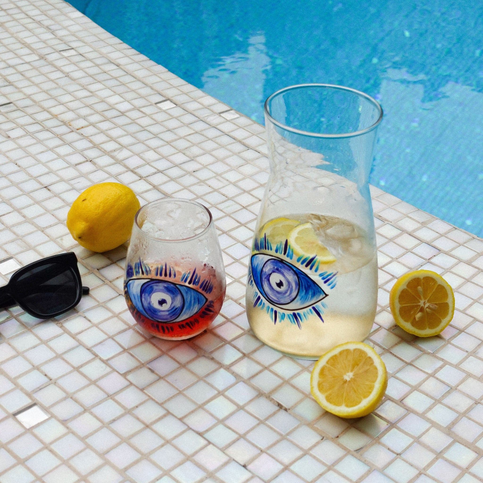 Grace your table with Maryam Water Glasses, where centuries of Jordanian glass-painting tradition meets the refined elegance of sophisticated entertaining. Named for grace and beauty, Maryam embodies the art of hosting with intention—where every detail matters and every guest feels honored. Jordan's master artisans apply intricate evil eye designs with the precision of calligraphers, their steady hands guided by generations of inherited technique. Each glass in this set of 6 bears the subtle signature of handcrafted excellence: slight variations in brushwork that authenticate its artisan origins and distinguish it from factory-produced glassware. The protective evil eye motif—revered across Middle Eastern cultures as a guardian against envy—adds layers of meaning to your table, transforming simple hydration into a ritual of hospitality and protection. Crystal-clear glass provides an elegant foundation for the cobalt blue patterns while showcasing the color and clarity of fine wines, sparkling water, or artisanal beverages. The balanced proportions and refined silhouette complement formal place settings, white linens, and carefully curated tablescapes. Perfect for hosts who set tables with seasonal flowers and heirloom silver, collectors building sophisticated glassware wardrobes, wedding registries, or meaningful gifts for those who appreciate artisan craftsmanship. Complete your elegant service with the Maryam Water Carafe.