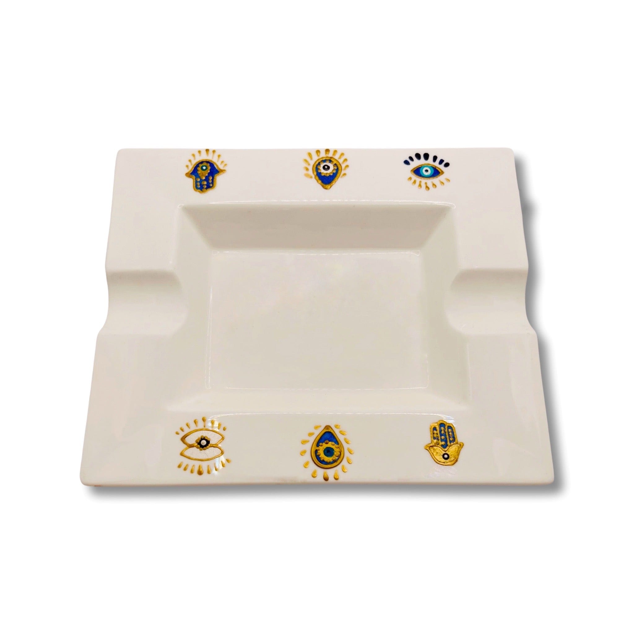 Skilled ceramic artisans in Jordan create each piece as a celebration of Middle Eastern craftsmanship and cultural symbolism. Craftspeople meticulously hand-paint the protective nazar motif onto pristine white ceramic, creating pieces that add both mystique and cultural significance to your space. This symbol has been revered across Mediterranean and Middle Eastern cultures for thousands of years, believed to ward off negative energy, deflect envy, and bring good fortune and blessings to your home and guests.