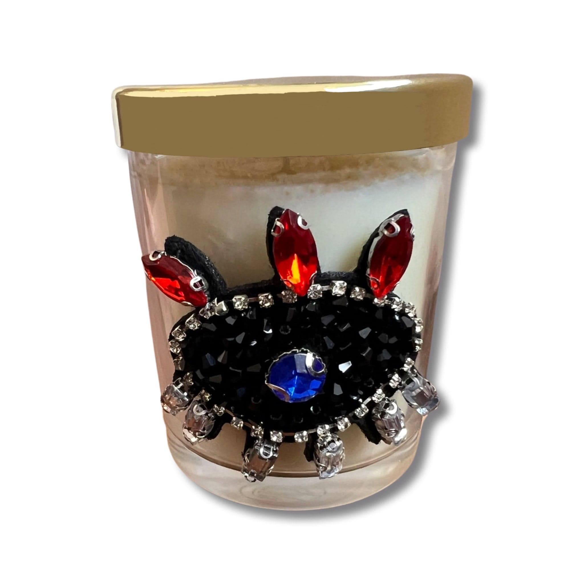Bring a calming and peaceful atmosphere to your living space with these beautiful Nazar Vanilla scented candles. Each candle features the protective evil eye (nazar) design, beautifully embellished with decorative appliques on clear glass with an elegant gold metal lid. The soothing vanilla fragrance creates a relaxing ambiance while the evil eye symbol adds spiritual significance and cultural meaning to your home decor. Perfect for aromatherapy, meditation, creating cozy winter nights, or simply creating a tranquil environment, these scented candles combine beautiful design with delightful fragrance. The vanilla soy wax burns cleanly and evenly, filling your space with a warm, comforting scent that's especially inviting during cold winter evenings. Choose from a variety of different evil eye designs to match your style. An ideal gift for housewarmings, birthdays, or anyone who appreciates home fragrance with meaningful symbolism. Explore our Candle Collection for other options.