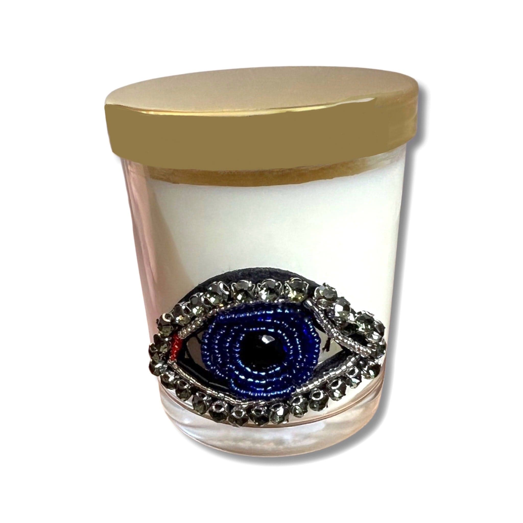 Bring a calming and peaceful atmosphere to your living space with these beautiful Nazar Vanilla scented candles. Each candle features the protective evil eye (nazar) design, beautifully embellished with decorative appliques on clear glass with an elegant gold metal lid. The soothing vanilla fragrance creates a relaxing ambiance while the evil eye symbol adds spiritual significance and cultural meaning to your home decor. Perfect for aromatherapy, meditation, creating cozy winter nights, or simply creating a tranquil environment, these scented candles combine beautiful design with delightful fragrance. The vanilla soy wax burns cleanly and evenly, filling your space with a warm, comforting scent that's especially inviting during cold winter evenings. Choose from a variety of different evil eye designs to match your style. An ideal gift for housewarmings, birthdays, or anyone who appreciates home fragrance with meaningful symbolism. Explore our Candle Collection for other options.