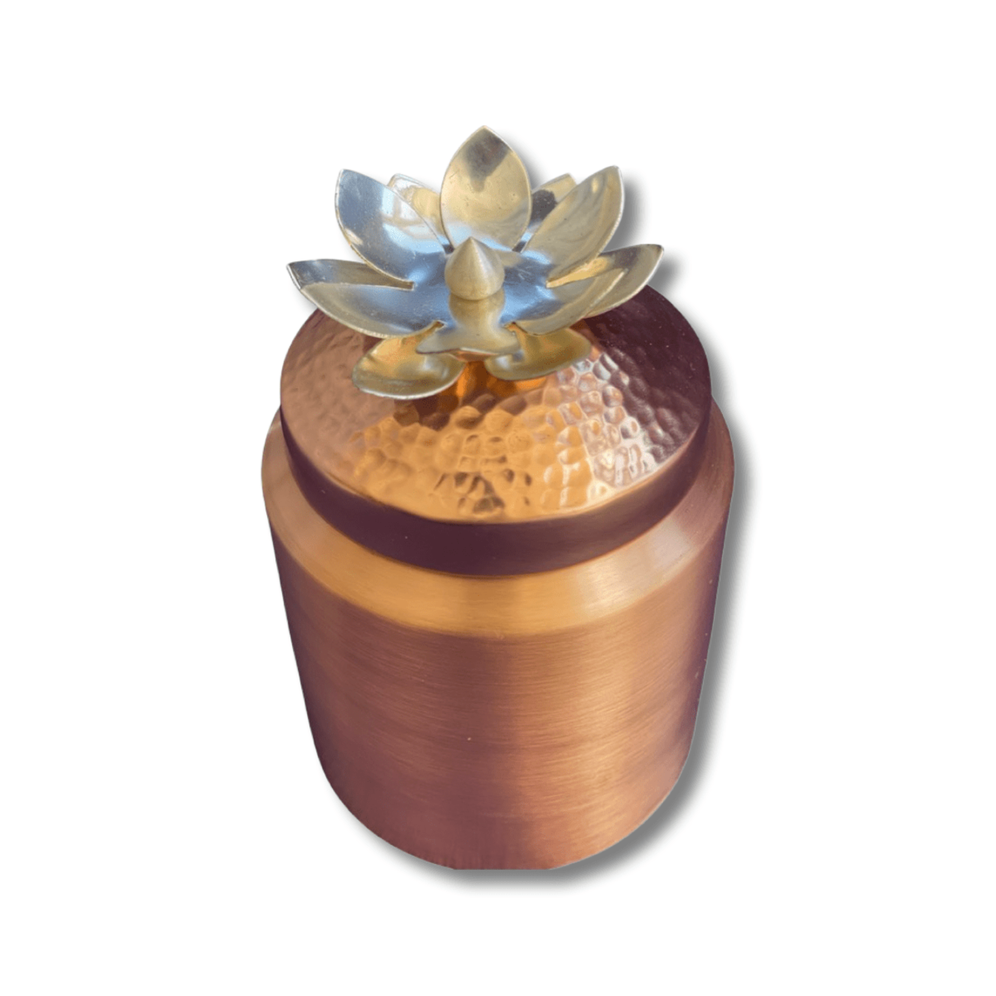 Skilled metalworkers in India create each container through traditional copper-working techniques, carefully shaping and finishing the metal to achieve a...