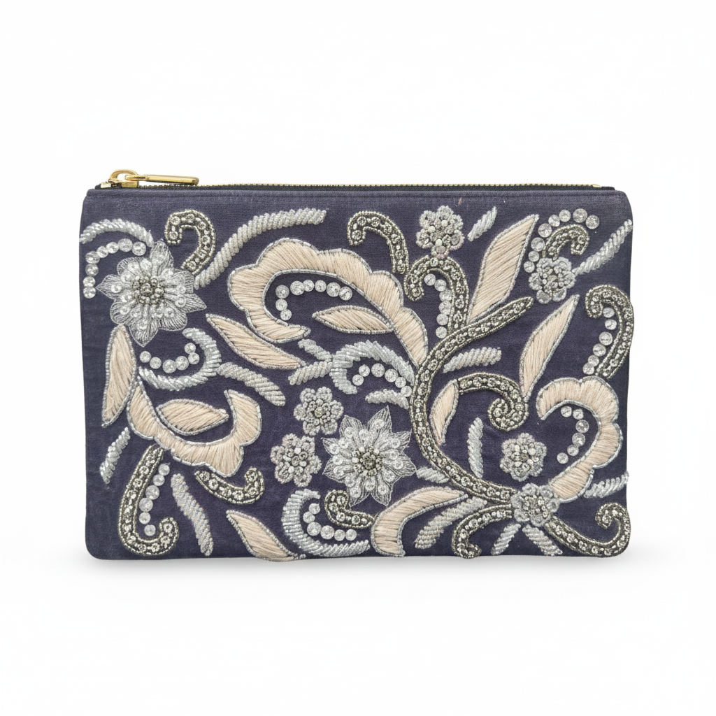 Make an unforgettable entrance with this hand-beaded evening clutch, available in timeless Black or vibrant Purple to match your personal style. Master artisans in India create each clutch through an intricate process that requires exceptional skill—meticulously placing and stitching thousands of shimmering beads by hand onto luxurious velvet. This painstaking beadwork demands precision, patience, and artistic expertise honed over generations, reflecting traditional Indian decorative techniques passed down through families of specialized craftspeople. The Purple option radiates sophisticated glamour with its rich jewel tone, perfect for making a bold statement at weddings, galas, or festive celebrations. The Black version offers timeless elegance and versatility, complementing any evening ensemble from classic little black dresses to colorful formal gowns. Because each beaded evening clutch is entirely hand-crafted, every piece is unique with natural variations in bead placement and shimmer intensity—these aren't flaws but hallmarks of authentic artisan work that distinguish handmade luxury from mass production. The compact 20 cm x 10 cm x 5 cm size provides just enough room for your essentials—lipstick, phone, cards, and keys—without the bulk of larger bags. The plush velvet base adds tactile luxury while providing structure and durability. Perfect for weddings, anniversary dinners, New Year's Eve parties, award ceremonies, or any special occasion where you want to carry sophistication in the palm of your hand.