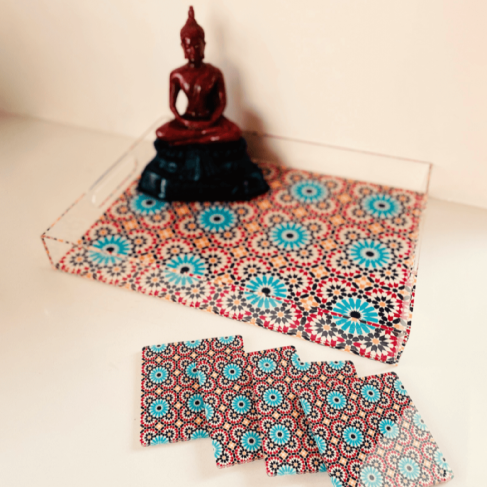 Created in Turkey, each Rosella Acrylic Coaster in this set of 4 celebrates Turkish artistic heritage with bold, intricate geometric designs. These stunning coasters feature traditional patterns reimagined with modern flair, blending centuries of cultural legacy with contemporary style. Crafted from high-quality acrylic, they are durable, lightweight, and stain-resistant, making them perfect for everyday use or special occasions. The easy-to-clean surface ensures hassle-free maintenance, while the vivid red colors and dynamic patterns infuse any table setting with eye-catching charm. Whether you're hosting parties, enjoying quiet coffee breaks, or searching for a unique gift, these coasters bring Turkish artistry to your home. Elevate your décor with this perfect blend of functionality and cultural craftsmanship. Essential tabletop accessories for Hong Kong homes seeking artisan coasters and premium table decor. Explore our White Coasters with Flower for more artisan designs.