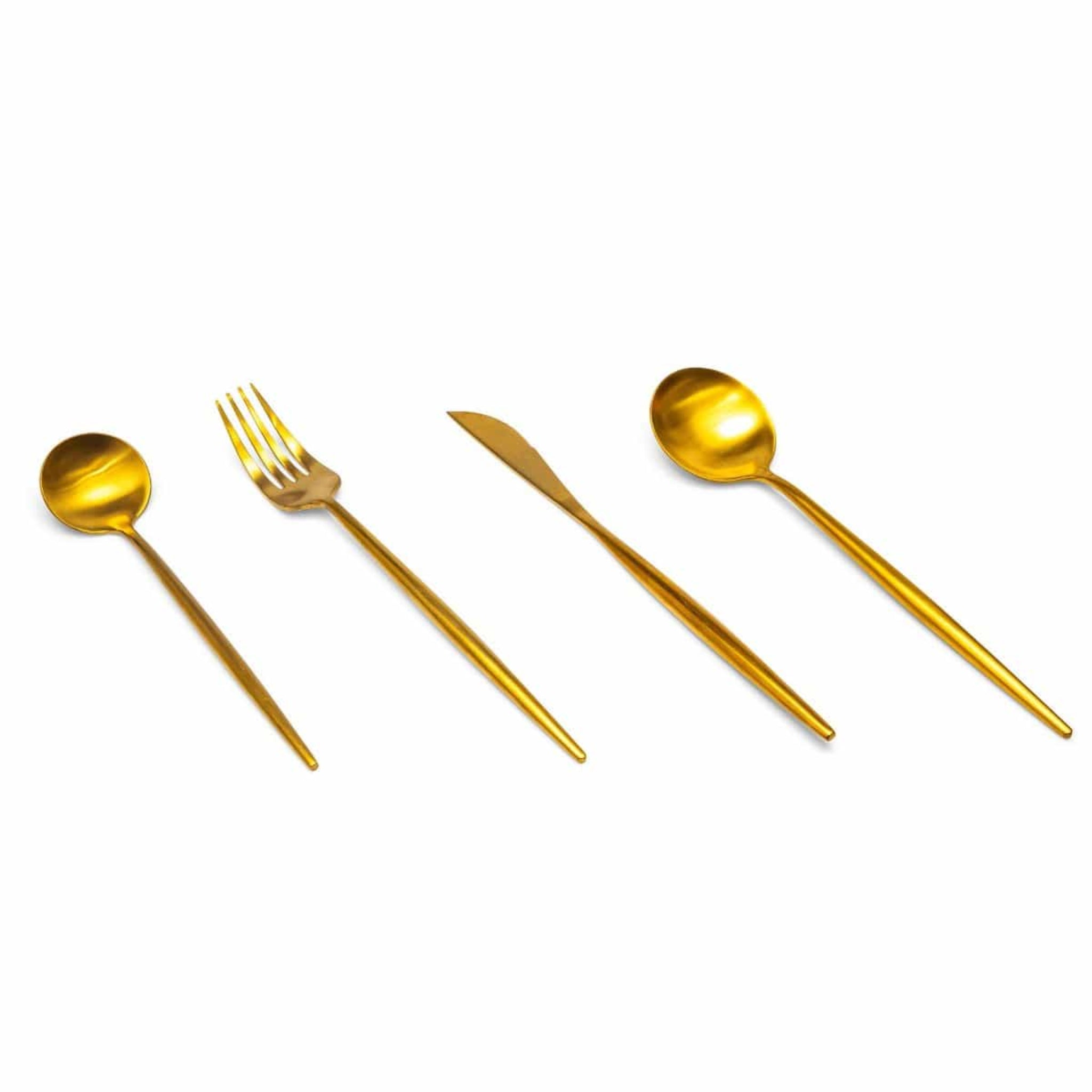 The Ruva Cutlery Set provides complete formal place settings for the occasions that matter most—festive dinners with extended family, anniversary celebrations that deserve proper table settings, or holiday gatherings where you want to impress without pretension. This four-piece set includes a dinner knife, dinner fork, tablespoon, and teaspoon, each crafted from stainless steel with a brushed gold finish that adds warmth to white tablecloths and candlelight without the intimidation factor of sterling silver. The coordinated pieces create a cohesive look that signals to guests that this meal is special, that you've made an effort, that this gathering matters.