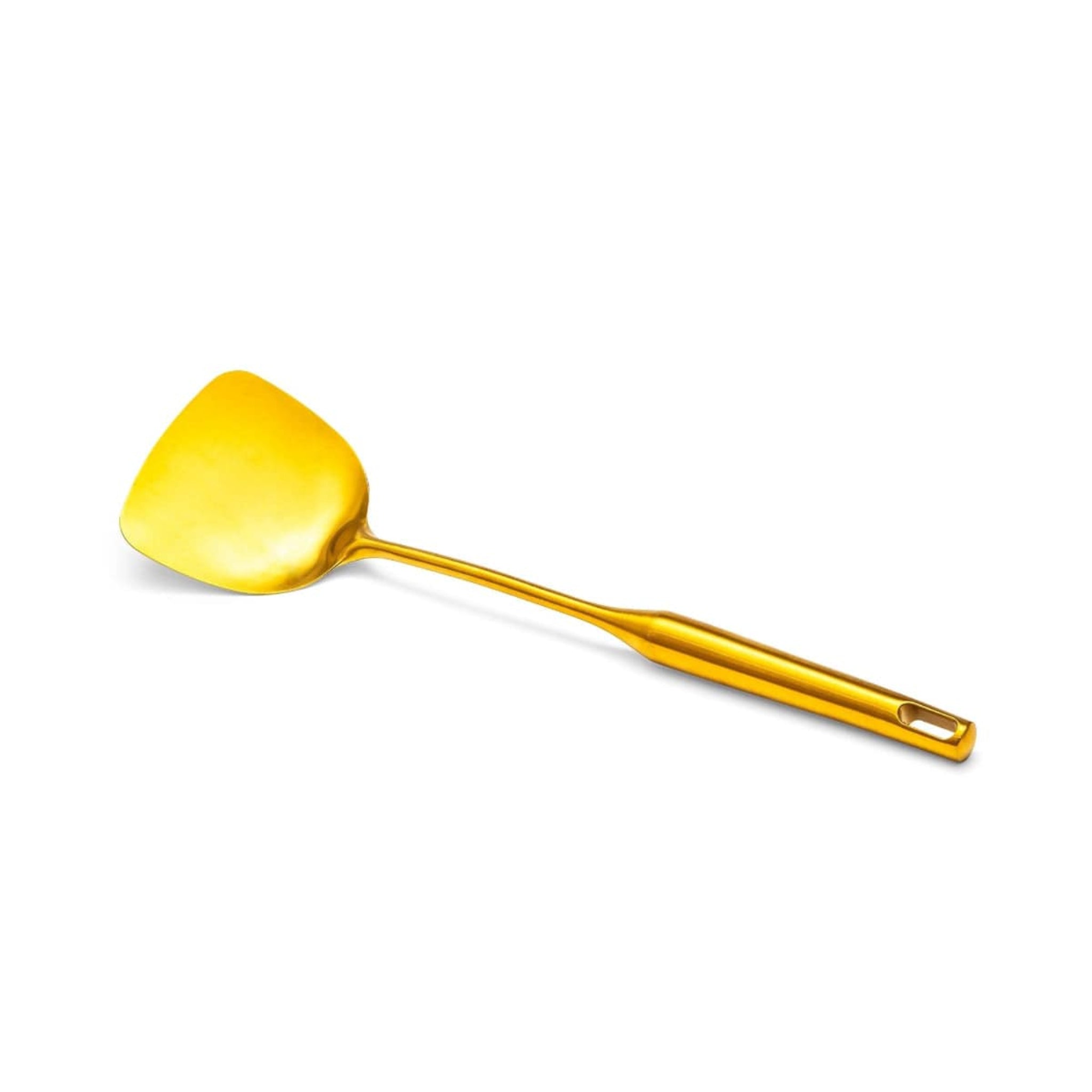 Perfect for the home chef who values both performance and presentation—flip pancakes on Sunday mornings, turn vegetables while stir-frying, plate main courses with restaurant flair, or serve lasagna at family gatherings. The gold finish adds warmth to your kitchen while the substantial 211-gram weight feels balanced and professional in hand. The smooth surface glides under foods without sticking, making cooking and serving effortless.