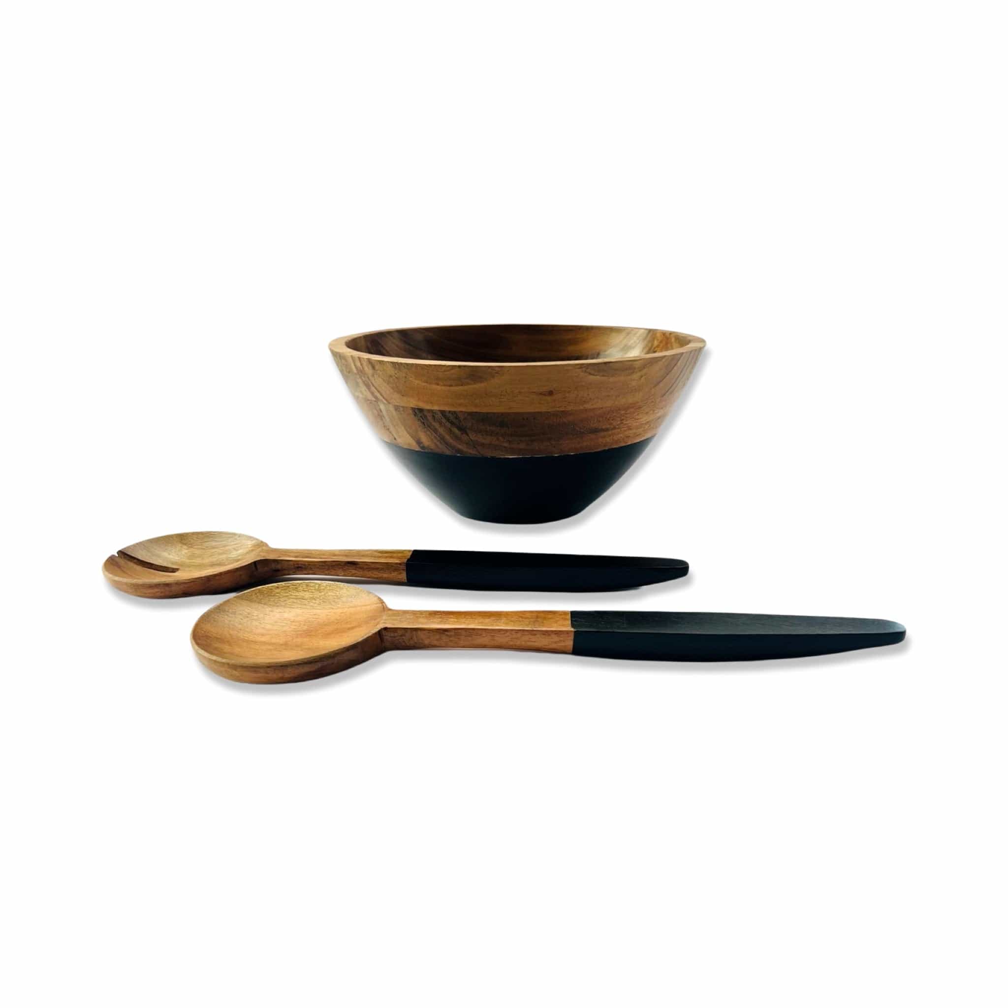 Skilled Indian artisans create this complete three-piece set from sustainable mango wood, combining a generous serving vessel with matching utensils for effortless entertaining. The rich, natural grain patterns showcase the inherent beauty of responsibly sourced material, while the smooth hand-finished surface feels luxurious to the touch. Available in sophisticated black or pristine white finishes, this versatile set adapts to any table aesthetic from modern minimalist to rustic farmhouse. The substantial size accommodates family-sized salads, grain dishes, pasta, or fruit displays, making it perfect for Thanksgiving feasts, fall harvest dinners, Christmas gatherings, or everyday meals. The included serving pieces feature comfortable handles and generous scoops for easy tossing and plating. Because each piece is individually crafted from natural materials, unique grain variations and subtle color differences ensure no two sets are identical—making yours authentically one-of-a-kind. The durable construction withstands daily use while the eco-friendly material supports sustainable forestry practices. This complete set eliminates the need to coordinate separate pieces, providing everything needed for beautiful salad service. Perfect for hosts who entertain frequently, families who gather around the table, or as an exceptional housewarming gift, wedding present, or Thanksgiving gift. Pair with our Glykini or Daloni Servers for additional serving options.