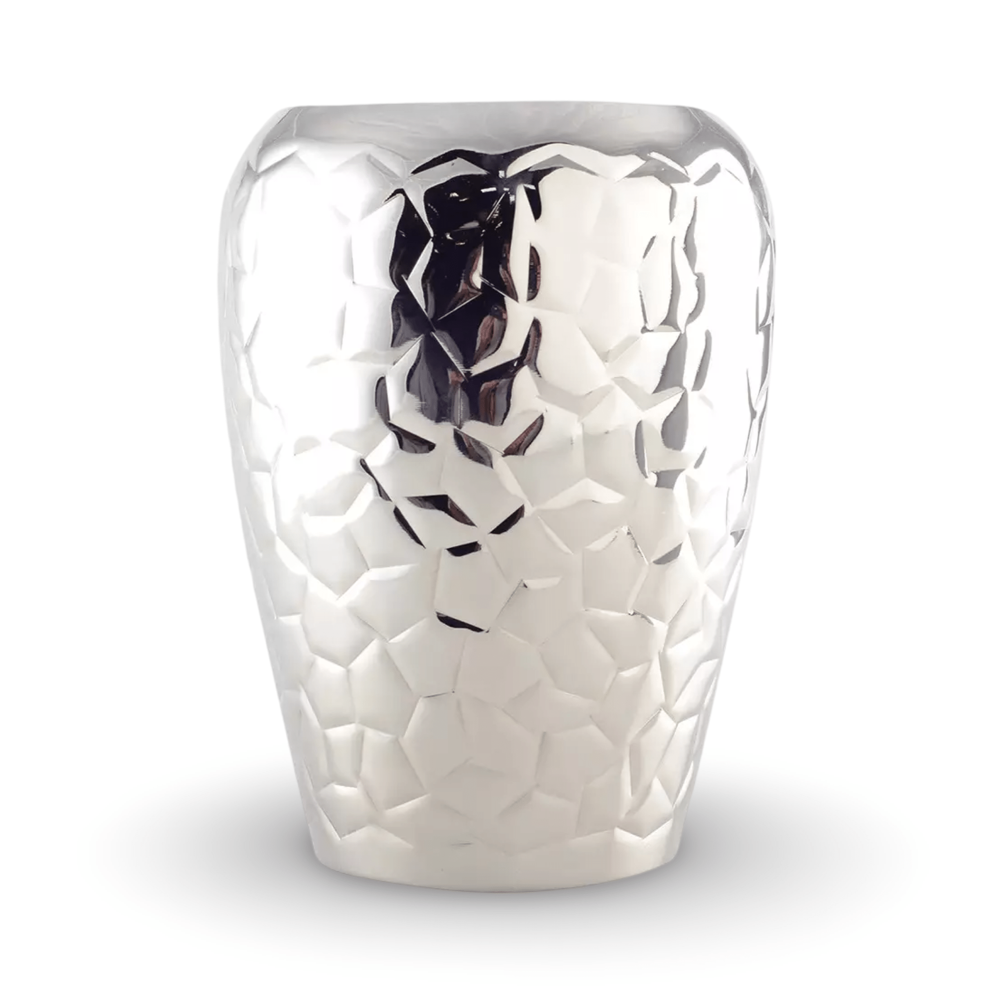 Hand-hammered by skilled metalworkers in India, the Taara Wine Cooler showcases traditional Indian craftsmanship with modern functionality. Each wine cooler is individually shaped by artisans who use time-honored metalworking techniques to create the double-walled construction that provides superior insulation. The hand-applied hammered finish adds both visual texture and functional grip, while the sleek silver tone brings understated elegance to any setting. The double-walled construction maintains your wine's ideal temperature for hours, ensuring every glass is perfectly chilled from first pour to last. Simply pre-chill the cooler, slip in your favorite bottle, and enjoy flawlessly chilled wine while entertaining with confidence. As a handcrafted piece, each Taara wine cooler carries its own unique character. Variations in the hammered texture and finish are natural signatures of artisan work, ensuring no two pieces are identical. Perfect for Christmas dinners, New Year's Eve gatherings, and adding sophistication to your bar cart. Pair it with our Taara Ice Bucket for the ultimate entertaining setup.