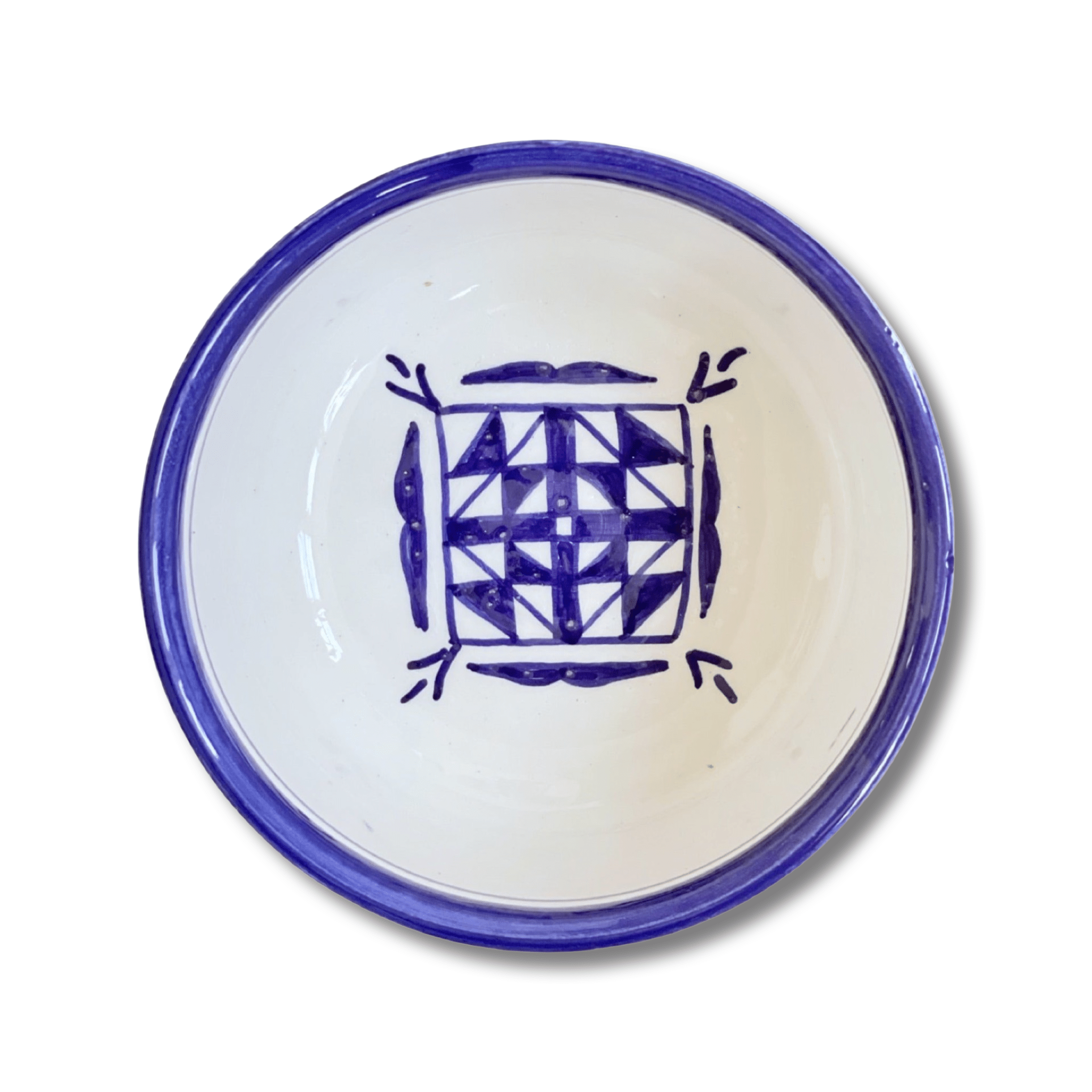 Nourish yourself in style with the Tiri Bowl, where Morocco's vibrant blue-and-white ceramic tradition meets health-conscious eating in a piece designed to make fresh, wholesome foods look as good as they taste. Created by Moroccan pottery artisans using techniques passed down through generations, this bowl features energizing cobalt blue geometric patterns that complement the natural colors of healthy ingredients—leafy greens, bright vegetables, golden grains, colorful fruits. The lively design creates visual excitement that makes nutritious eating more appealing, encouraging you to fill your bowl with rainbow salads, nourishing grain bowls, vegetable-packed soups, and fresh fruit. This is the bowl for the wellness enthusiast who meal-preps colorful Buddha bowls, who starts mornings with açai bowls topped with fresh berries, who makes big batches of vegetable soup, who believes that healthy food should be celebrated not just tolerated. The 13cm size is perfectly proportioned for substantial salads, hearty soups, smoothie bowls, poke bowls, Mediterranean grain bowls, or generous fruit servings—large enough to satisfy but sized to encourage mindful portions. The vibrant blue pattern provides visual contrast that makes fresh ingredients pop: red tomatoes look redder, green herbs look greener, orange carrots more vibrant. The energizing design creates positive associations with healthy eating, making your nutritious meals feel like treats rather than obligations. Because each bowl is hand-painted by Moroccan craftspeople, yours features unique variations in pattern and color that reflect authentic artisan work.