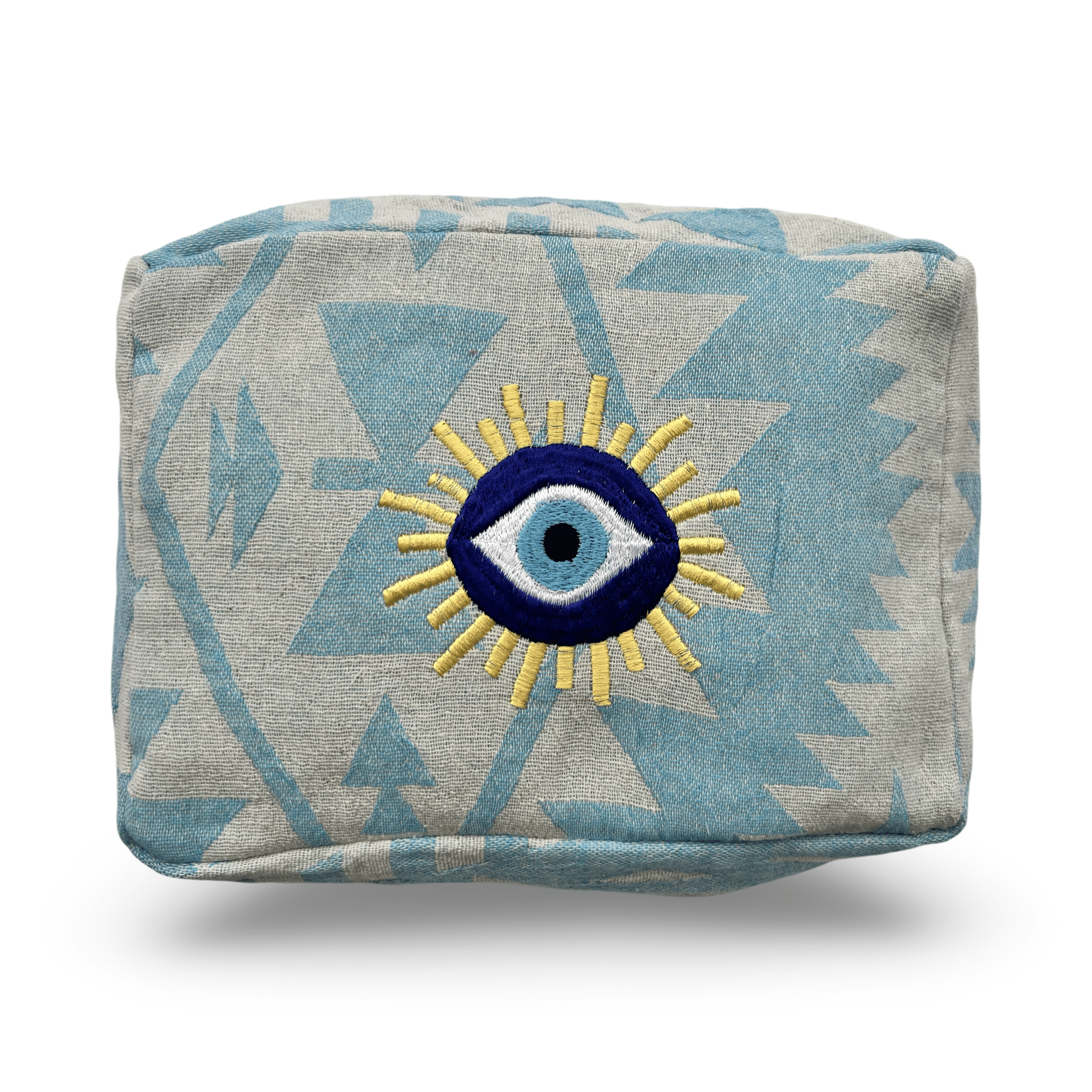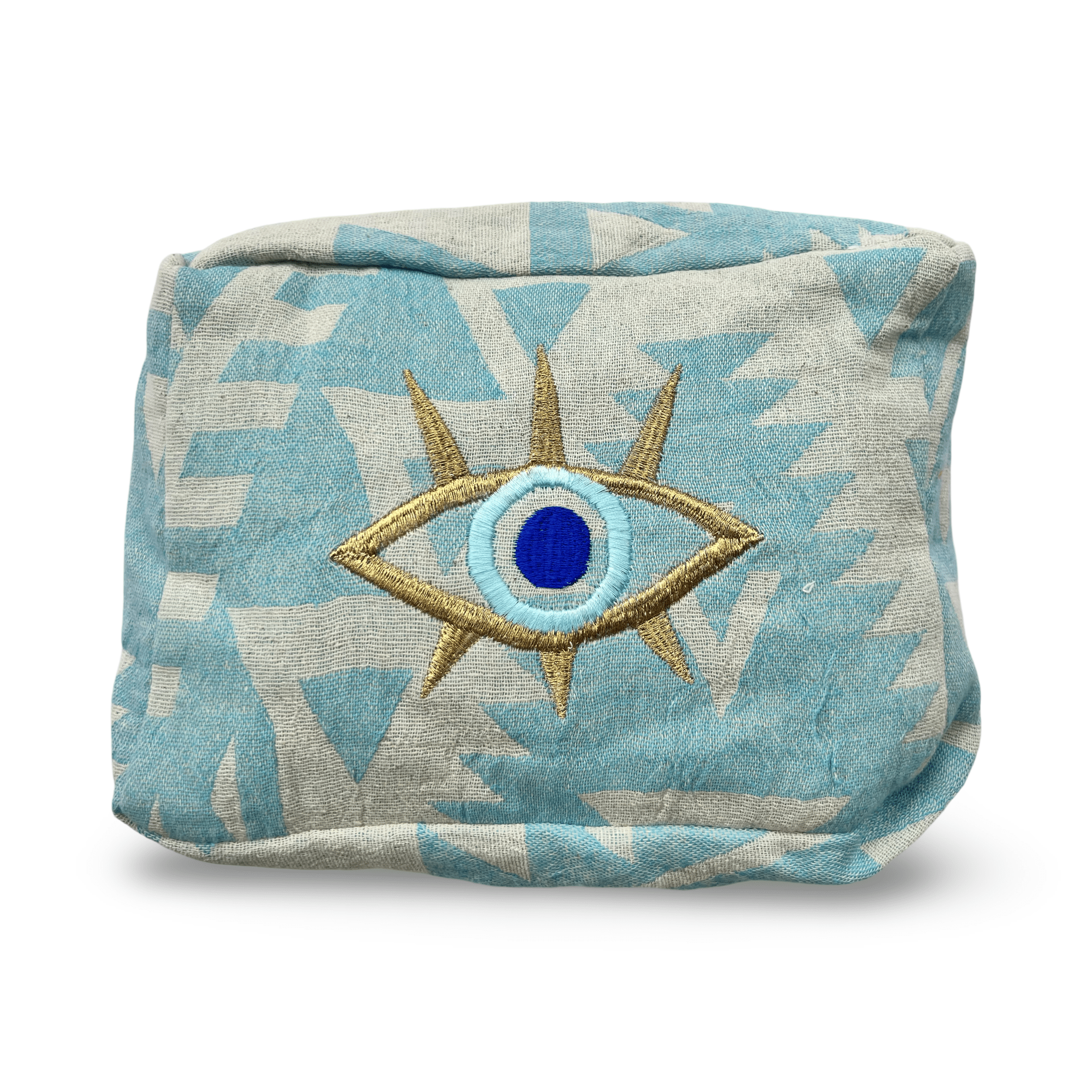 The Turquoise Ohana Cosmetic Pouch channels the vibrant energy of Mediterranean waters and Middle Eastern markets. This bold jewel tone makes a statement in your handbag, transforming a functional necessity into a conversation piece. Master artisans in Lebanon execute each protective motif with precision, their needlework celebrating centuries of textile tradition.