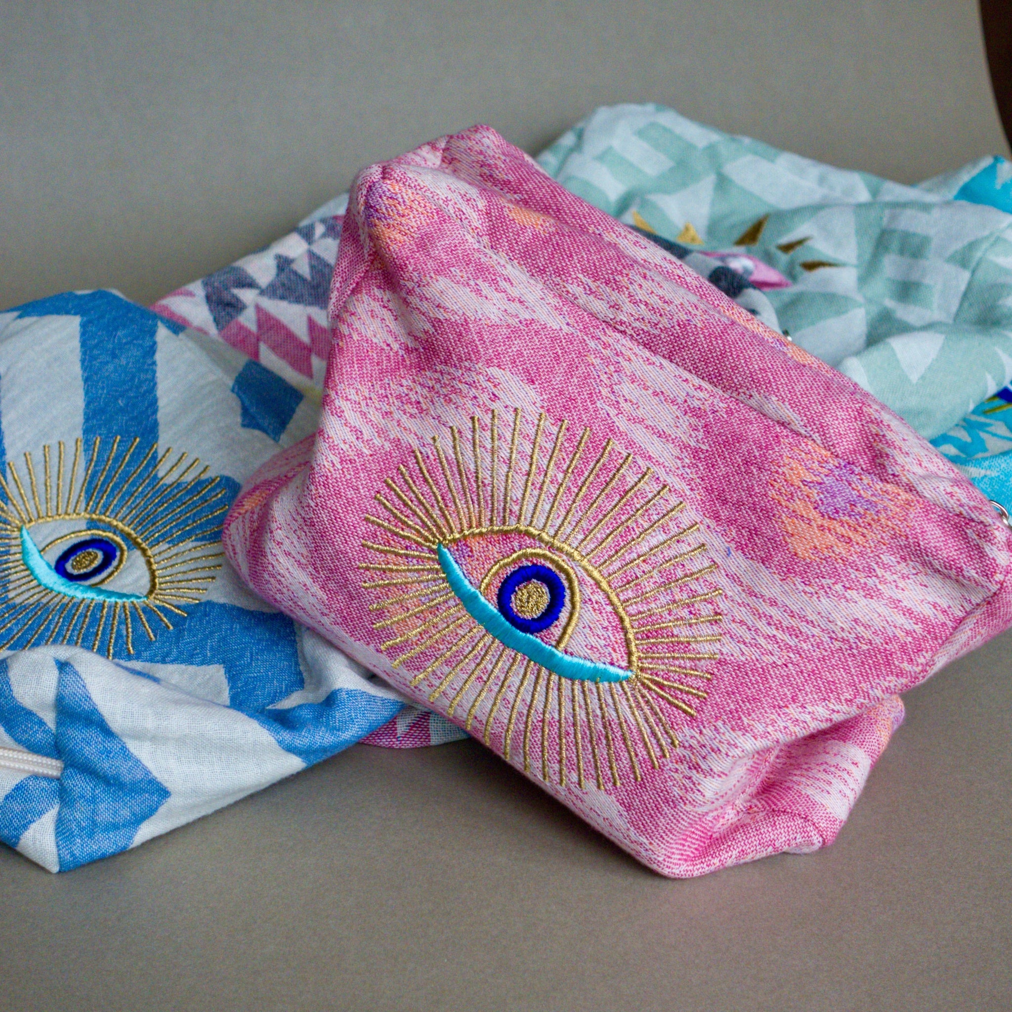 This is the pouch for women in Central who embrace color as self-expression, who believe beauty routines should spark joy, who choose accessories that reflect their vibrant personality. The stitched detail adds cultural depth and protective symbolism to your daily carry. Perfect for the bold spirit in Hong Kong who appreciates artisan craftsmanship and isn't afraid to stand out. Also available in green, gray, coral, pink, blue, and multi-colored.