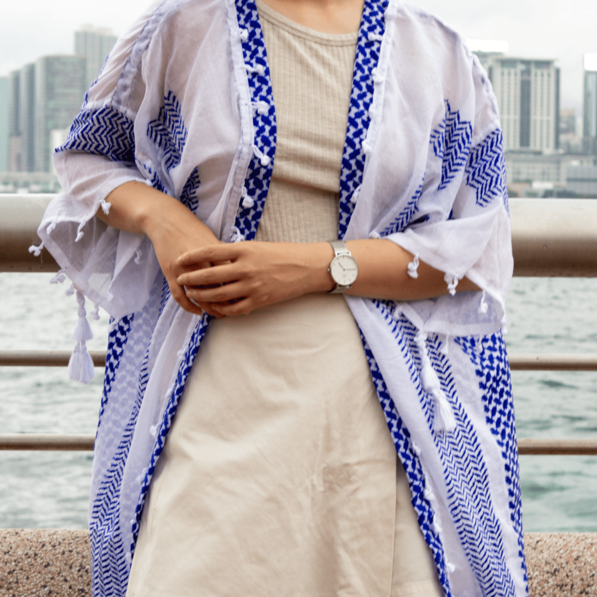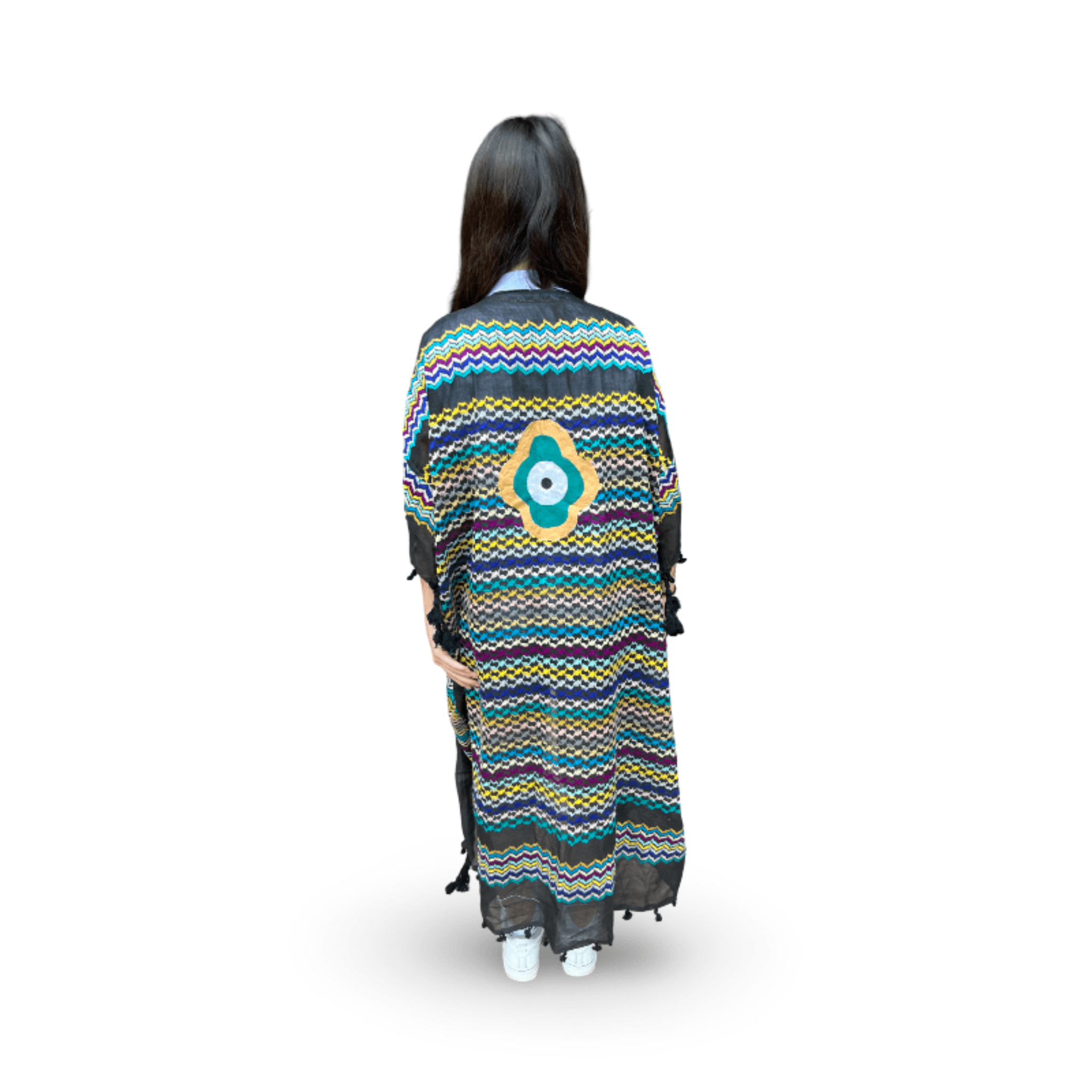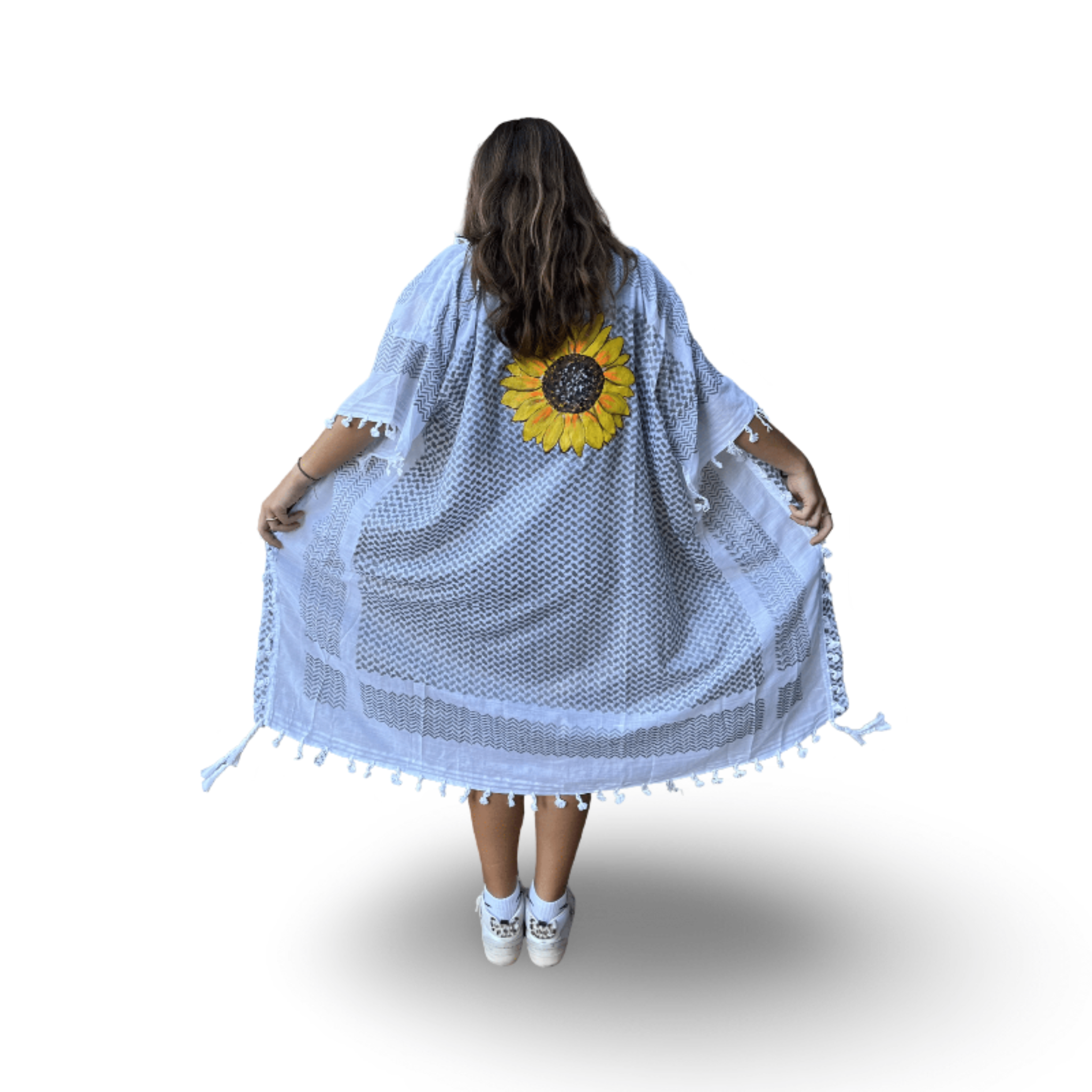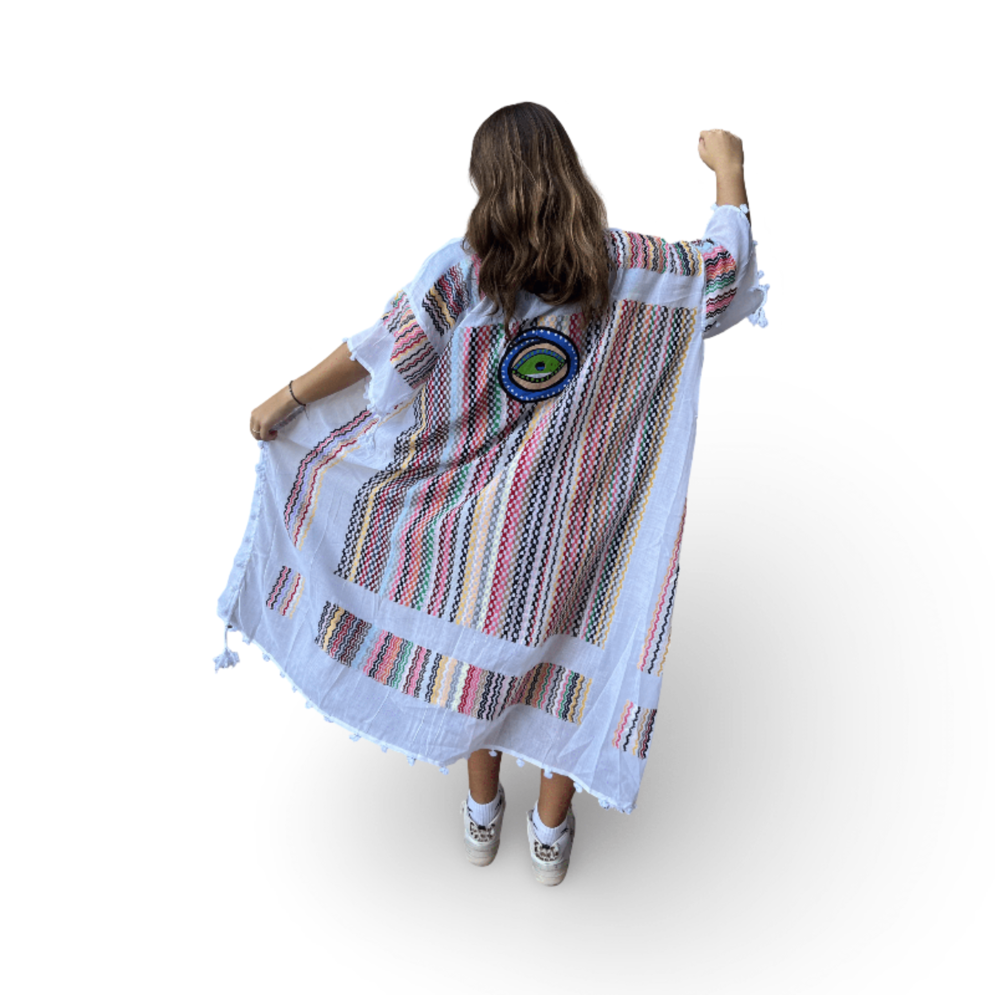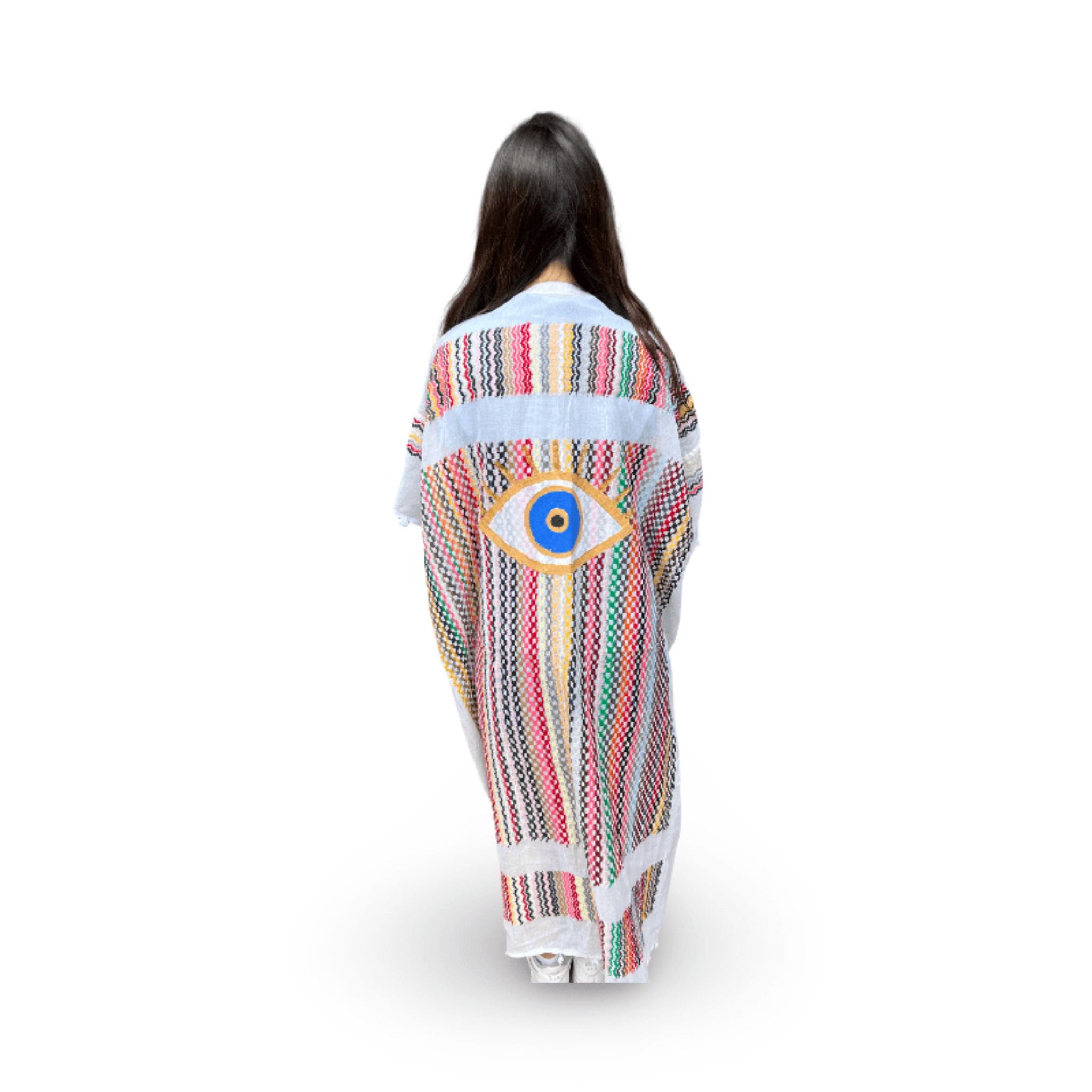 Skilled textile artisans in Lebanon create each Tyre Kaftan from high-quality traditional Guthra cotton fabric, hand-painting beautiful motifs ranging from evil eyes and hamsas to butterflies and sunflowers. The lightweight and breathable material offers perfect comfort for hot summer days, while artisans carefully create each piece with meticulous attention to detail. Whether you wear it as a beach cover-up, poolside loungewear, or a stylish layer at home, this beautiful kaftan keeps you cool and effortlessly chic. The premium fabric ensures you stay comfortable from sunrise to sunset, bringing authentic Lebanese craftsmanship and artisan character to your summer wardrobe. Perfect for beach vacations, resort getaways, poolside relaxation, or as a thoughtful gift for travelers and anyone who appreciates resort wear with cultural artistry. An ideal addition to your Hong Kong summer wardrobe or vacation essentials. Opt for our Mina Evil Eye Shirt for an alternate look.
