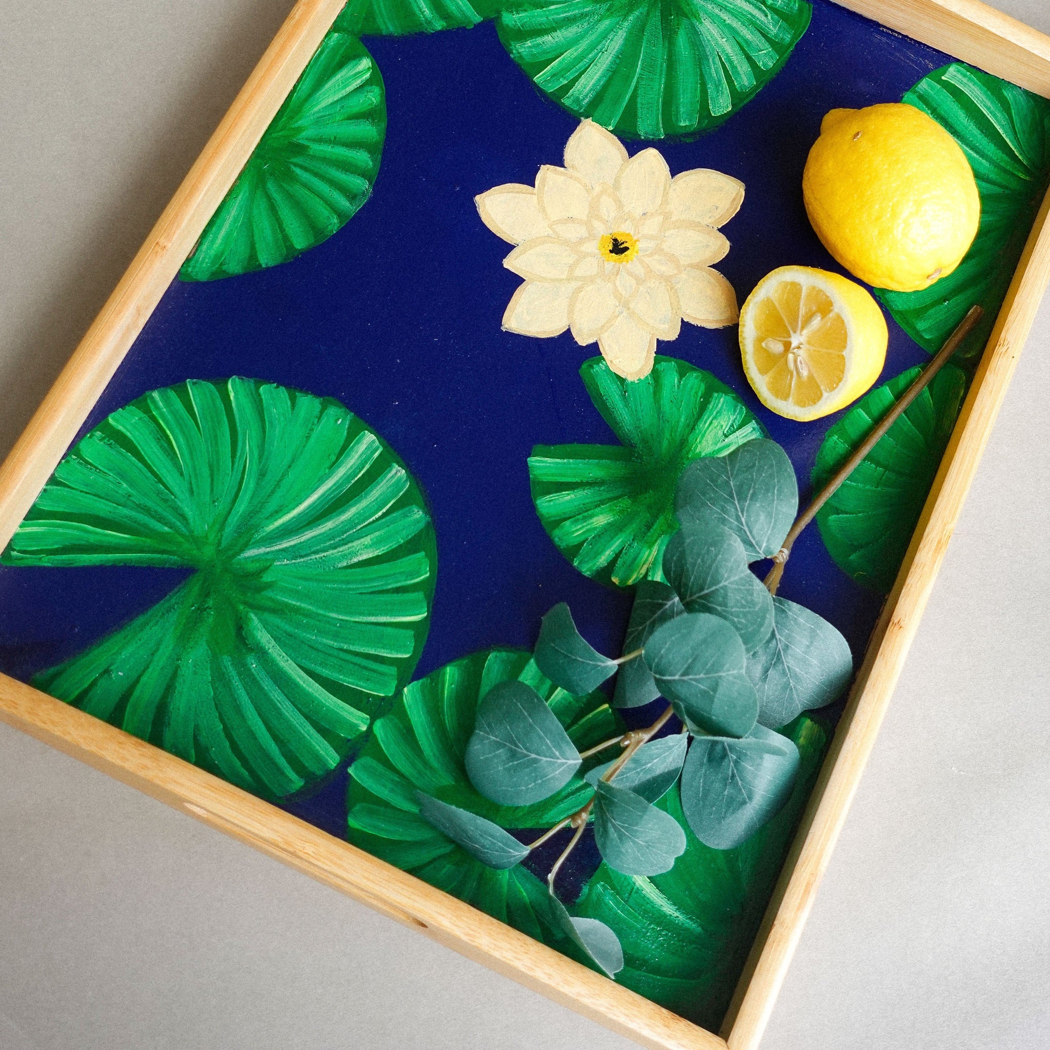 Embrace the sacred symbolism of the water lily with the Yellow Water Lily Tray, where Jordanian artisan craftsmanship meets ancient meaning. Painted by skilled artisans in Jordan's traditional workshops, this tray celebrates the flower revered across Eastern cultures as a symbol of enlightenment, purity, and rebirth. The bloom rises from muddy waters to pristine beauty, representing the soul's journey from darkness to light, making this tray a meaningful addition to mindful homes.