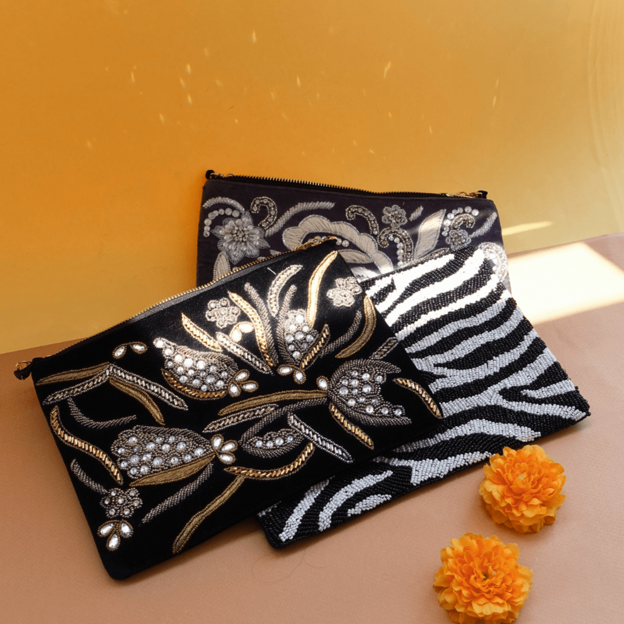 Unleash your wild side with this show-stopping Zebra Beaded Clutch that commands attention the moment you walk into the room. Indian artisans transform thousands of black and white beads into a bold animal print pattern that channels safari chic meets high fashion glamour. Unlike solid-color evening bags that fade into the background, this statement piece sparks conversations and turns heads—perfect for the confident woman who refuses to blend in. The dramatic zebra stripes create dynamic visual movement, with each stripe individually beaded by hand to achieve the organic, irregular patterns found in nature. This isn't cookie-cutter symmetry—it's wild, untamed elegance captured in beadwork. The high-contrast black and white palette means this clutch coordinates with absolutely everything in your wardrobe while adding instant edge to any outfit, from sleek black cocktail dresses to vibrant jewel-tone gowns. Fashion insiders know that animal prints are perennial classics, not fleeting trends—this clutch will remain relevant season after season, year after year. The compact 20 cm x 10 cm x 5 cm size holds your evening essentials without overwhelming your silhouette, while the 300g weight provides substantial quality you can feel. Perfect for fashion-forward events, art gallery openings, rooftop parties, destination weddings, or any occasion where you want to make a memorable impression. For the woman who treats accessories as art, who appreciates bold design, and who knows that sometimes the best outfit choice is the one that makes people ask where you got it.
